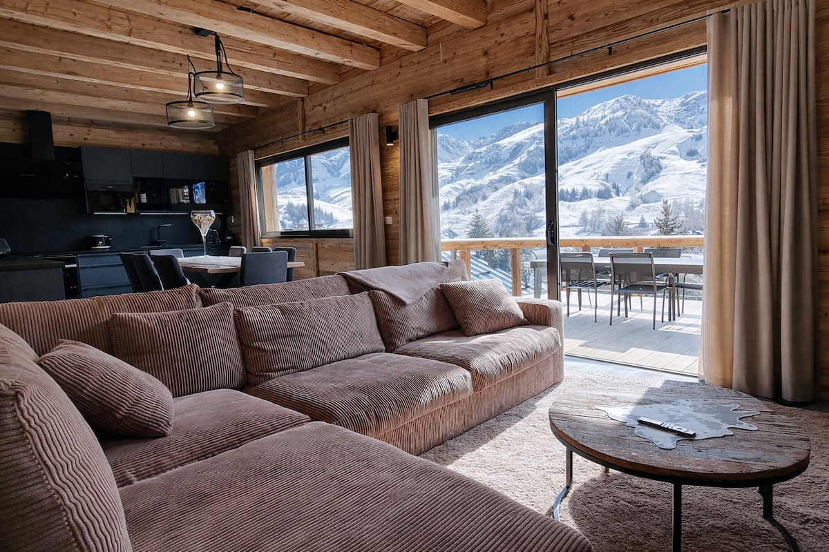 Ideally situated in the resort, in a quiet location, this cosy apartment lies at the heart of the French Alps. With its large south-facing terrace and panoramic views 🤩, our apartment promises you a relaxing and unforgettable holiday. Featuring 2 bedrooms, 2 bathrooms and a kitchen that opens onto the living room, every detail has been designed to make the most of the space. Separate toilet. A cellar and private parking are included in the rental.