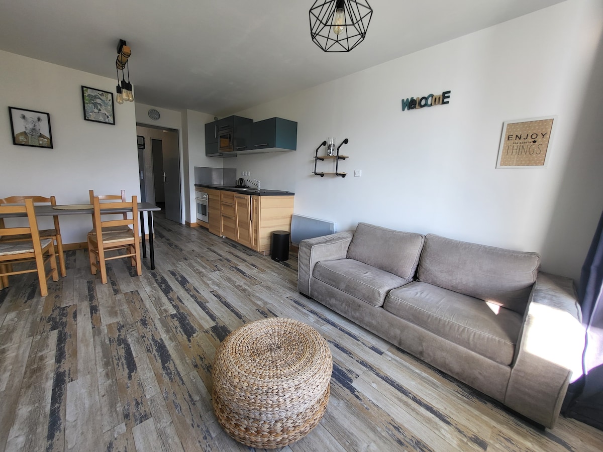 Studio de 12m2 au pied des pistes en plein centre station ( résidence Côte Brune, à 3 minutes à pied du Jandri Express). Séjour avec canapé convertible 130x190 ( couette 200x200 + 2 oreillers) et télévision écran plat, salle d'eau avec douche, lavabo et WC. Kitchenette équipée, micro-ondes, four, machine à café Senseo. Casier à skis. Proximité tous commerces. Résidence avec digicode. Le ménage standard de l'appartement est compris. Les draps et serviettes ne sont pas fournis.