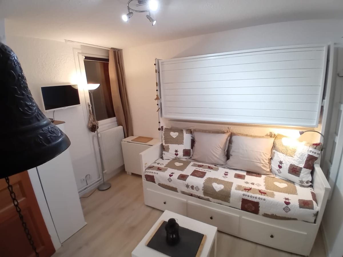 Lovely studio for up to 3 (sofa bed & single bed). Private car park and ski lockers provided Hairdryer ,straighteners, beddings, Coffee machine (senseo), a raclette set and everything needed in the kitchen (fridge, hob, microwave, small oven) It's simple, pretty , cosy , warm in the center and only steps away from main chairlift "le JANDRI" easy check in and out with secure digicode in private residence COTE BRUNE (no keys needed). NO DEPOSIT Studio on top floor, nice view from the window