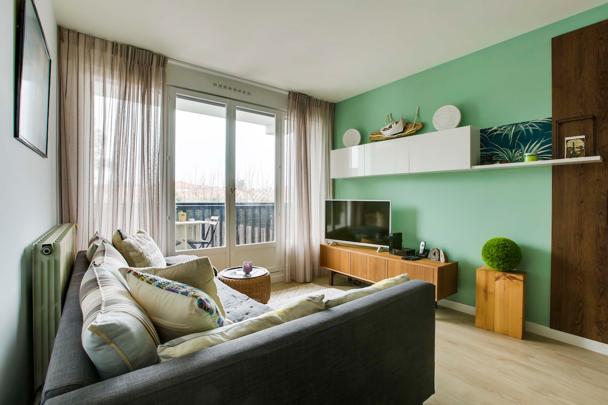 Appartement de 55m2 en plein cœur de la ville à 50m de la plage et au pied des rues piétonnes de St Jean de Luz. Parking privé en option. Demandez moi! Très clair, idéal pour une famille (5pers max) et décoré avec gout. Composé d’un séjour, de 2 chambres au calme, d’une salle d’eau avec douche et dispose d'un joli balcon au soleil. Double vitrage-Wifi-Lave linge-Lave vaisselle-Chauffage-Nespresso Des mesures d’hygiène et de nettoyage supplémentaires ont été mises en place pour votre sécurité