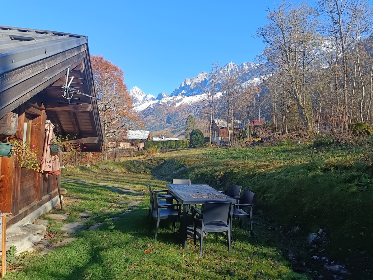 Nous sommes heureux de vous accueillir dans notre adorable petite maison/ ancienne remise maçonnée entièrement rénovée et réaménagée avec soin mi 2021. Belle terrasse sud ombragée l’après midi, vues vraiment magnifiques et dégagées vers le Mont- Blanc, les aiguilles de Chamonix, « au pied » du glacier des Bossons en face. En retrait de 20m de la route dans un quartier résidentiel. Transports à 2 pas. 2 places de stationnement devant la maison. Wifi. Pas de TV.