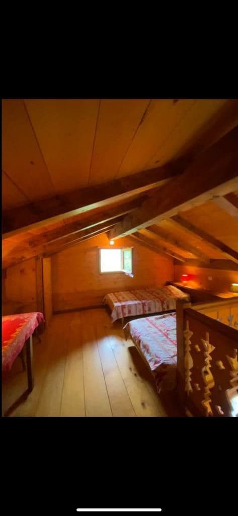 Independent cabin 323 sq. ft. located 10 minutes (by car) from Chamonix, bus and train stops are located 328 yards away. 1st floor: Kitchen/ bathroom/ sofa bed for 2 people. Underneath: Bed for 2 people. Parking Towels, sheets and animals are authorized Price: 550/week -80/night