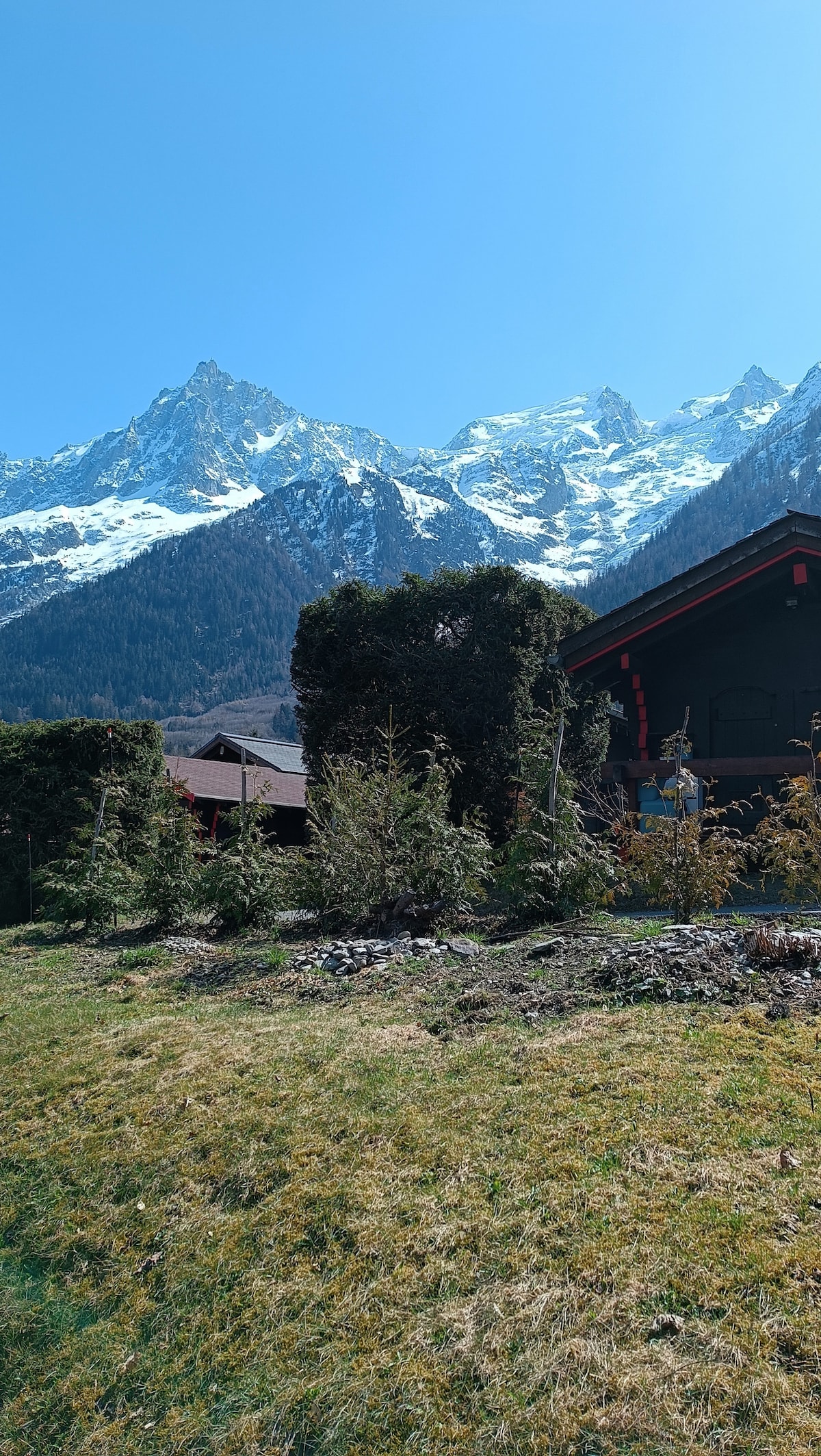 Our chalet designed with care, with its vast garden and spectacular mountains scenery, is ideally situated in an exclusive neighborhood on the sunny side of the valley. You are just 2 minutes drive from Chamonix center where it's all happening ! Hikes, spa, swimming pool, climbing and nature in the Alps.