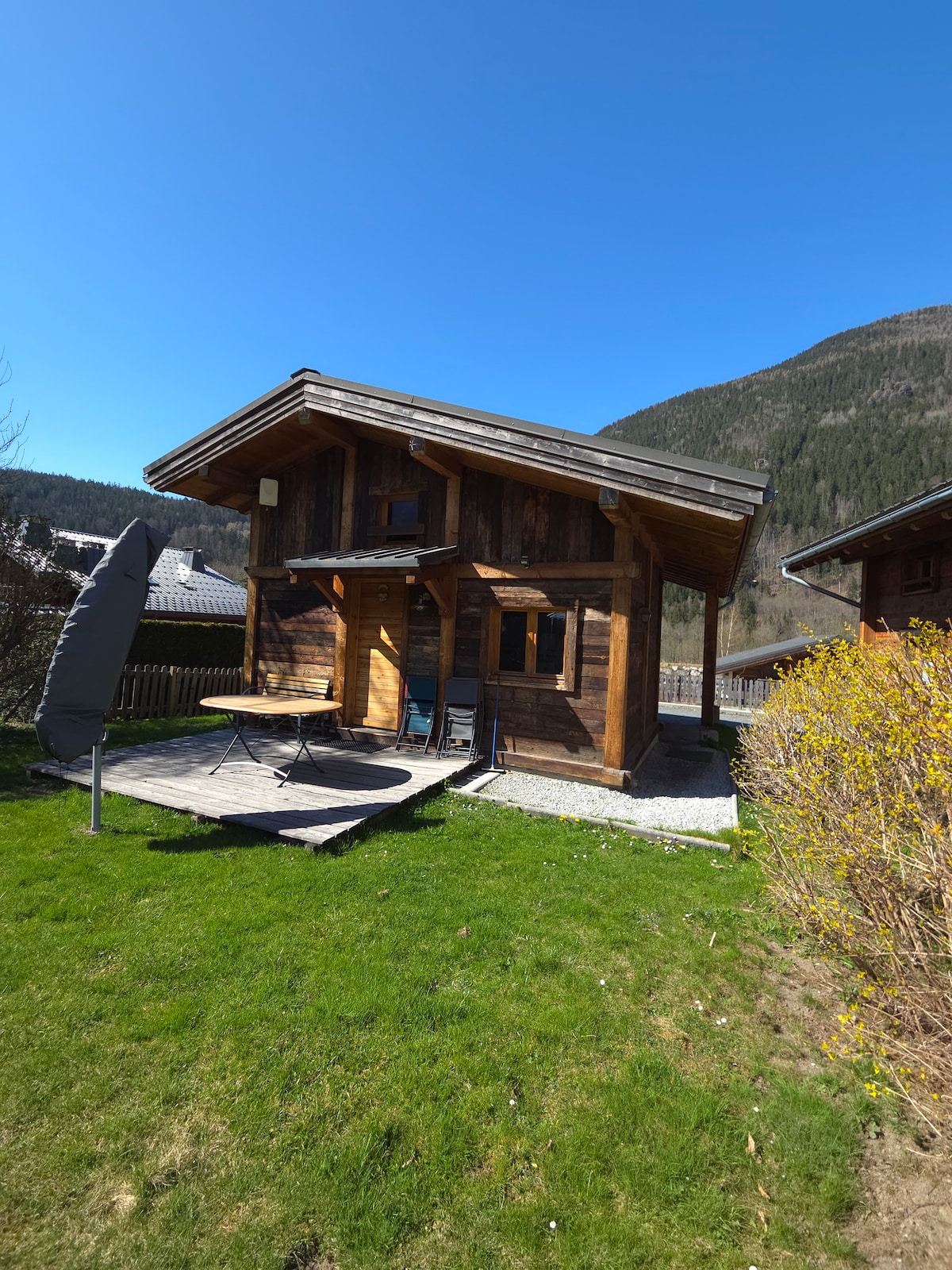 This is an extremely rare find: a bijou chalet with its own sauna and garden. ★Guests consistently love the sauna, the calm setting, and the quality of the chalet — it’s a truly special place to stay.★ 100 m² chalet just 5 minutes from Les Houches and the Chamonix valley. ✅ Private barrel sauna ✅ Fully equipped kitchen ✅ Garden with deck and BBQ ✅ Self check-in ✅ Parking for up to 3 cars ✅ Very fast internet (660 Mbps) ✅ Netflix and Amazon Prime ✅ Quiet, bucolic area