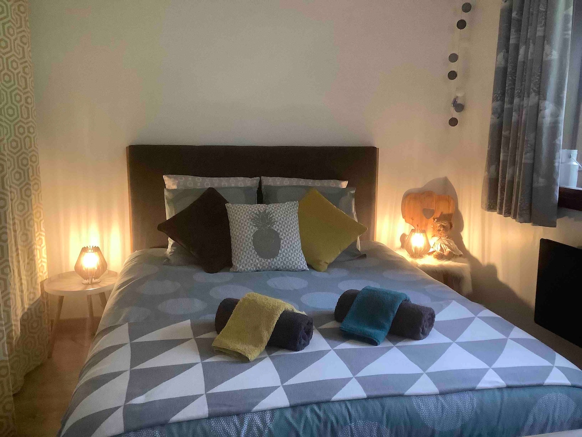 Nous vous accueillons dans notre chaleureux Appartement, vue Montagne, baptisé The Wolf, d'environ 40m2 refait à neuf en 2019. Comprenant même "un pas dans le vide" au 1er étage comme celui de l'aiguille du midi ! A 100 Mètres des pistes de ski et 10min en voiture de Chamonix. Vous vous sentirez comme chez vous ! We are enjoy to welcome you in our cozy appartment name's The Wolf, around 40m and renoved in 2019, Mountain View. Just next to the slopes 100m and the city Chamonix 10min drive!