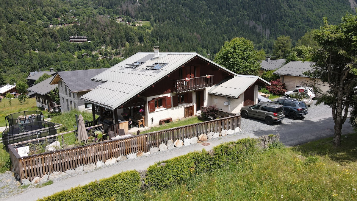 Avec la vue sur le Mont Blanc depuis le canapé, ce chalet de 4 pièces pouvant accueillir 6 personnes dans 65 m2 est situé dans un écrin de verdure, proche du centre ville. Situé dans une propriété de 1900 m2, ce chalet saura vous séduire par ses espaces et son confort. Wifi fibre optique de qualité ! Le centre ville se trouve à 13 minutes à pieds, et même un peu moins pour les sportifs ! Vous n'aurez aucun mal à rejoindre le téléphérique de l'Aiguille du Midi ou les pistes de ski.