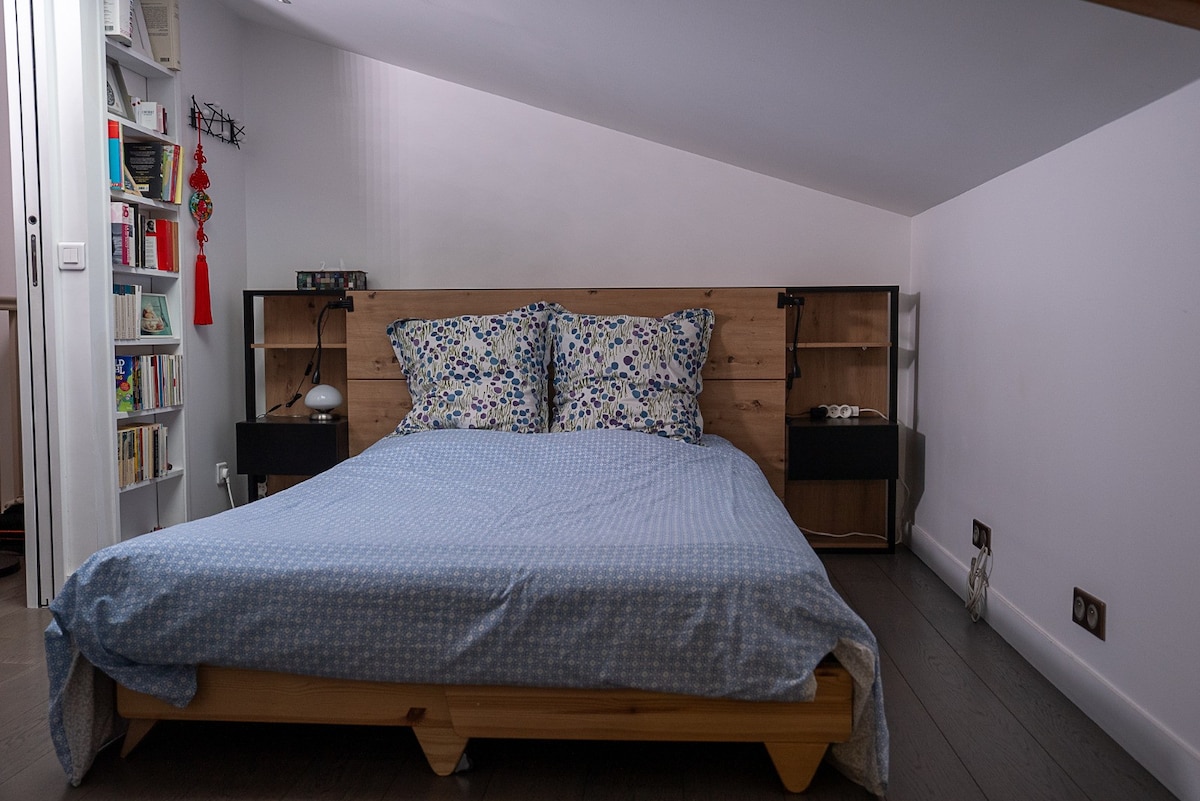 Loft lumineux, spacieux et moderne. Commerce à proximité (supermarché, boucher, boulanger, fromager). Cuisine équipée. La station de métro Serge Gainsbourg (ligne 11) au pied de l’immeuble. Le cœur de Paris à 16 minutes. Place de parking sécurisée. Wifi performant: fibre optique. Chambre 1 : 1 Lit double 140 x 200 cm, linge de lit fourni Chambre 2 : 2 lits simples 90 x 200cm, linge de lit fourni Lit parapluie pour bébé. TV connectée. Idéal pour tout type de séjour, bienvenue chez nous ! Maël