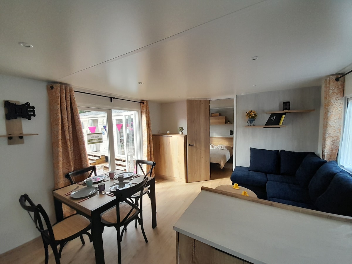 Profitez en famille de ce logement qui offre de bons moments en perspective dans un camping 4* situé à 4kms de la plage de la Palmyre et du zoo. nombreux avantages: club fun ,parc aquatique ,activités pour tous... une entreprise extérieure vous accueillera,un chèque de caution de 80 euros vous sera demandé (restitué à sa sortie si le ménage est concluant)