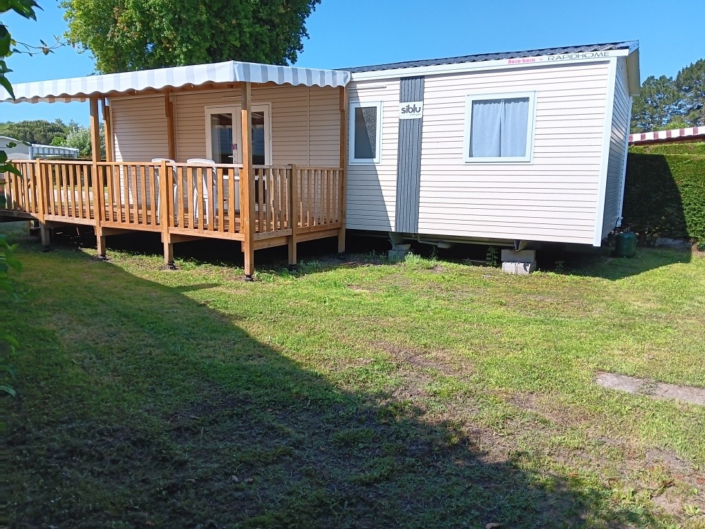 Mobil Home Anglais 4/6personnes marque WILLERBY Azur climatisé Camping Bonne Anse SIBLU 4 étoiles à la Palmyre (17570) Dans un cadre forestier aux abords de l’anse de la Palmyre, dans la forêt de la coubre et proche du zoo de la Palmyre accès direct à la piste cyclable camping disposant de toutes les prestations de vacances, 1 piscine chauffée et surveillée avec 3 grds toboggans, pataugeoire, salle de sport, laverie, Bar-restaurant, coiffeur, supérette, animations