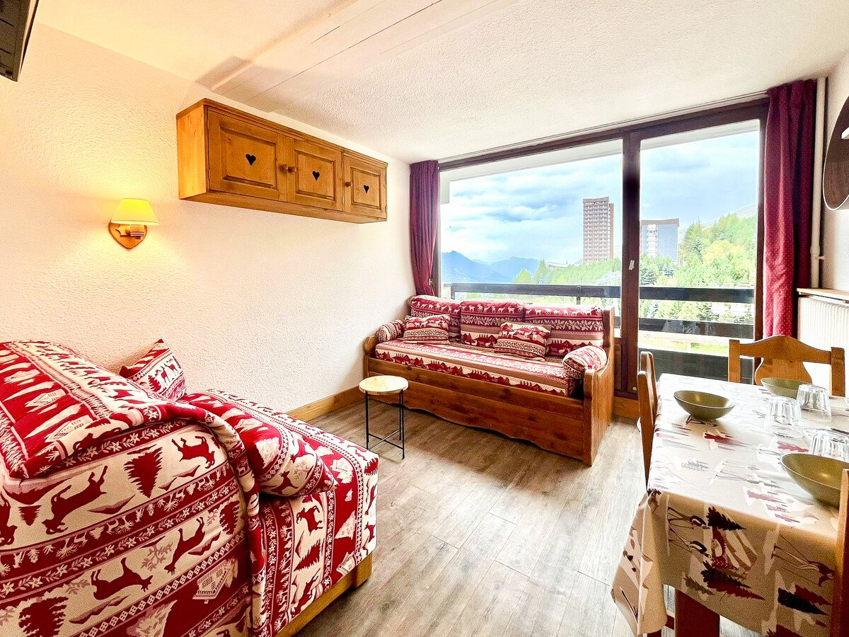 Fully refurbished (2022) studio in a "mountain typical and cosy style" (19 square meters), shoe cupboard and ski locker, in Les Menuires ski resort in the famous 3 Valleys domain (French Alps). Includes a high-quality bedding queen-size (160x200) convertible sofa, for your comfort. Perfect for winter (ski in / ski out) or summer holidays. Dedicated free Internet Wifi included. Looking for a bigger apartment? Come back to us.