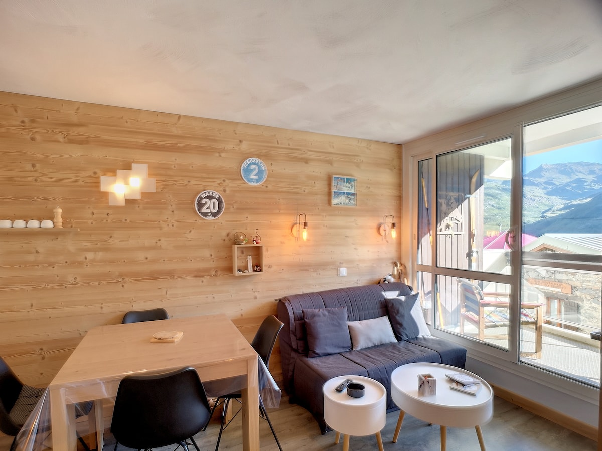 3 个山谷(3 Vallées)滑雪场脚下的单间公寓