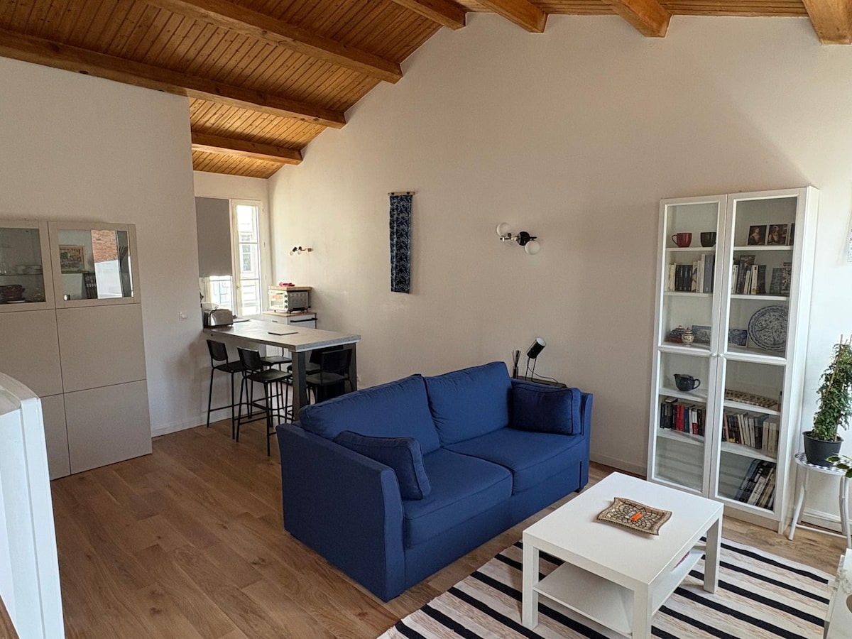 La Rochelle, situé dans le centre historique, emplacement idéal, Rue Saint-Yon, entre le vieux-port et le vieux marché, au pied de tous commerces. Dans un immeuble de caractère, calme, au deuxième et dernier étage, lumineux, LOFT Type 2 de 50m² habitable, style industriel, offrant des prestations haut de gamme, alliant le charme de l'ancien (parquet ancien, grande hauteur sous plafond, pierres apparentes) et du contemporain. Entièrement équipé ! (Poêle à bois hors service)