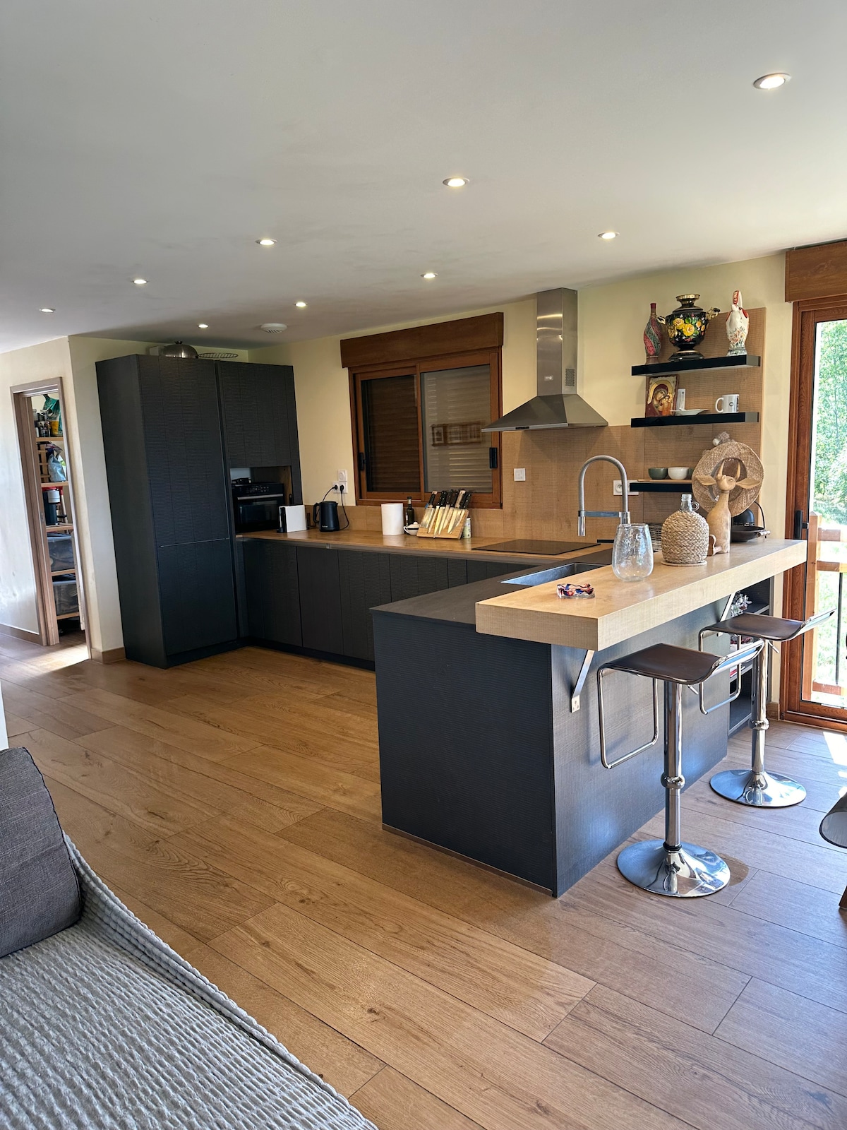 Bonjour, Hello, Hallo, We're renting a 538sq/feet, newly renovated, fully equipped flat with sloping ceiling , on the last floor of a detached chalet located on the heights of a peaceful hamlet. It includes a big terrace , parking, 2 king size beds (5,25 feet) and enjoys a beautiful view over the mountains. We live between Jausiers and Barcelonnette. It's a perfect location to go skiing, hiking, enjoy Barcelonnette's festivities or Jausiers' lake. Linen is provided. We hope to see you soon.