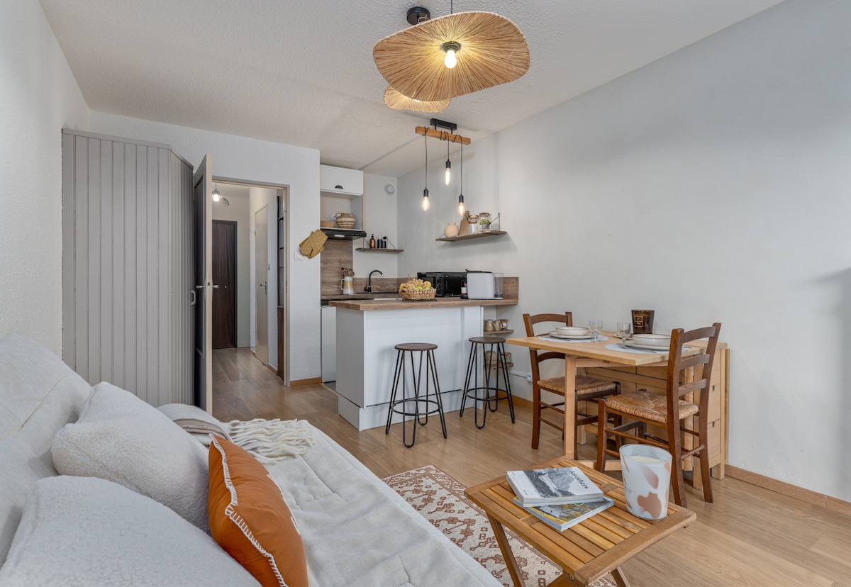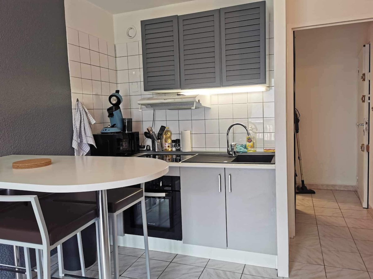 Bonjour, Nous sommes heureux de vous présenter notre appartement de 42 m2 ce petit chez soi se situe au 7ème étage de la résidence Le belvédère , très bien entretenue avec un gardien et un accès sécurisè . Confort , l'appartement propose: * Espace de vie agréable pour passer de bons moments en familles ou entre amis . * 1 chambre avec un lit en 160 * 1 canapé convertible en 160 * linges et draps non fournie. *location sur place de drap avec la residence