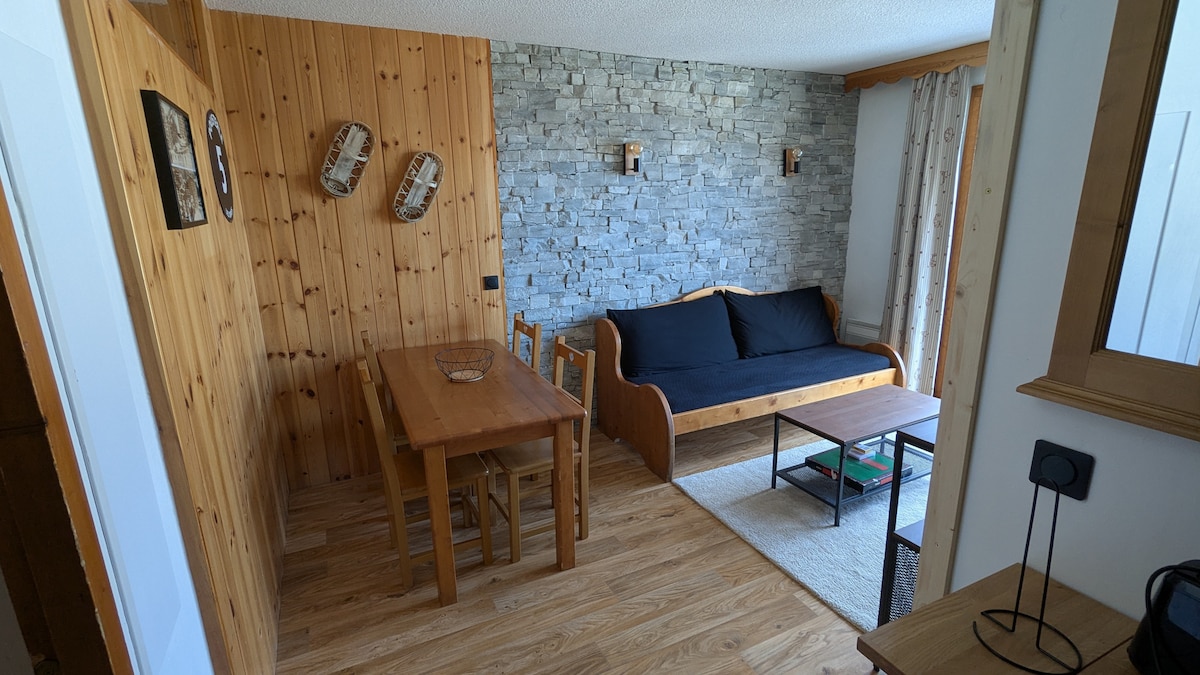 Bienvenue dans cet appartement parfait pour un séjour a la montagne! Pour 4 personnes, il dispose d'un coin montagne avec 2 lits superposés 90x190 cm et un clic clac dans le salon 140x190cm et d un local a ski Au pied des pistes, a quelques pas des remontées mécaniques, proche des commerces, profitez d'un séjour dans cette station familiale La résidence est équipée de : - piscine chauffée en haute saison - sèche linge dans la résidence payant