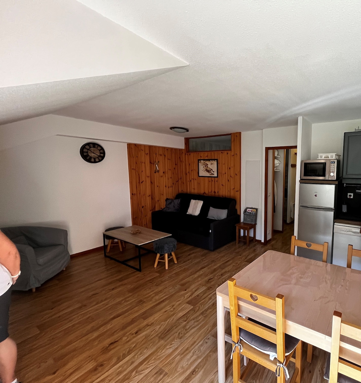 Profitez d'un logement au 5e étage élégant et central avec un départ skis aux pieds. L'appartement est proche de toutes commodités et dispose d'une place de parking couvert. Récemment rénové, il comprend 1 entrée, 1 cuisine ouverte sur séjour 1 chambre double et 1 chambre cabine, salle de bain et WC séparés, balcon exposé sud. Toutes les pièces de vie sont lumineuses et ont des fenêtres avec vue montagnes ou vallée. Un casier à skis et une piscine dans le même bâtiment viennent compléter l'offre
