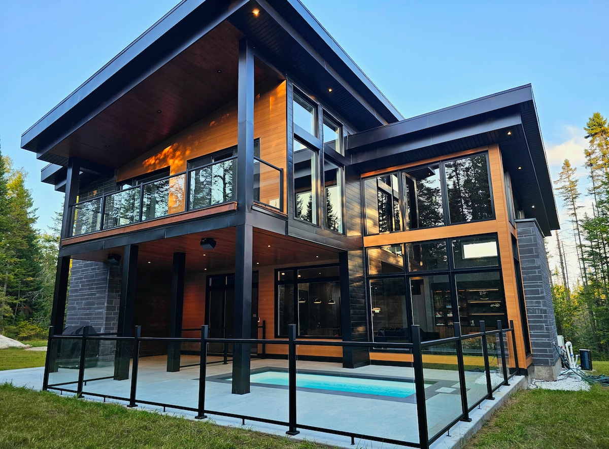 Découvrez une résidence unique alliant des décors allant de contemporain, zen à festif, un endroit ou aucune pièce ne vous laissera indifférent! Terrasse privée, bbq, espace bar, table de billard, table de poker. De tout pour toute la famille, Munie de toutes les commodités essentielles, LAmaison. vous offre les plaisirs d'être en forêt tout en étant à 10 min de tout. En famille ou entre amis, venez vivre plus qu'un séjour