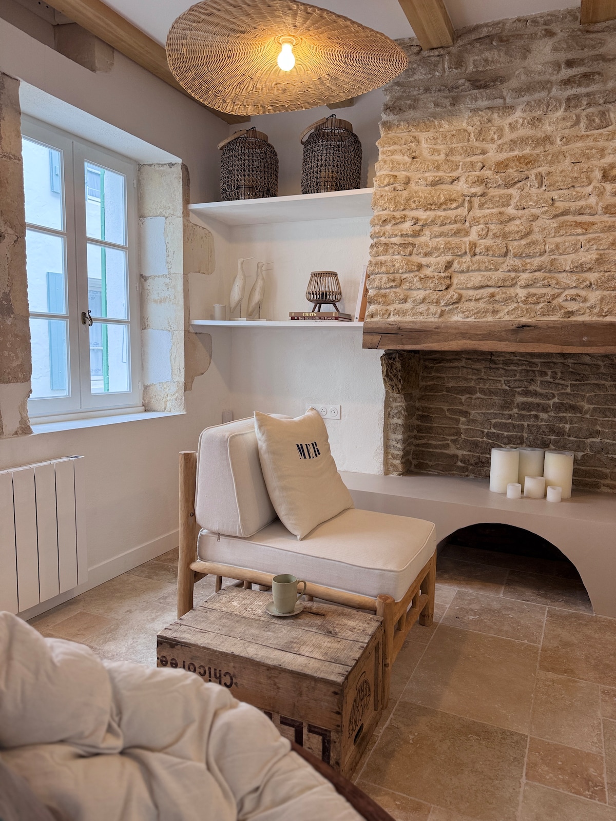 Cette charmante maison/appartement de 46m2 , fraîchement rénovée est dans le cœur historique de St Martin (bâtiment du XVIII siècle). Idéalement située , à quelques pas du port, du marché et des commerces. De la douceur, une lumière chaleureuse, la décoration est soignée. Chaque objet a été choisi pour vivre de façon simple et agréable: le confort actuel avec des objets chinés. Notre refuge donne sur la magnifique place de la République et sur une cour privée, classée et bucolique . Bienvenue !