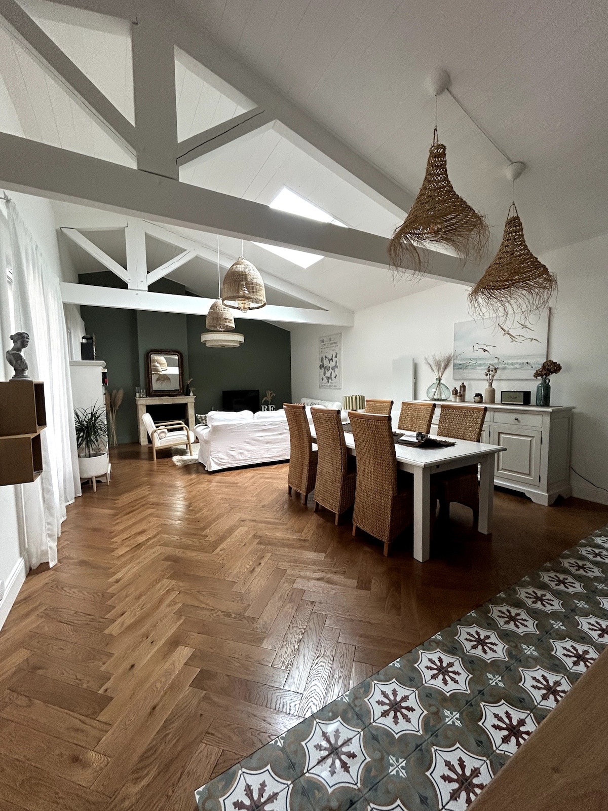 Maison de plain pied, baignée de lumière, 70m2 avec une belle cour de 30m2. Située à 3 minutes du centre d'Ars et à 5min de la plage de Grignon. Cette maison comprend 2 chambres dont une grande chambre parentale de 14m2 avec de grands placards et un bureau, une seconde avec 2 lits simples et également de grands placards.