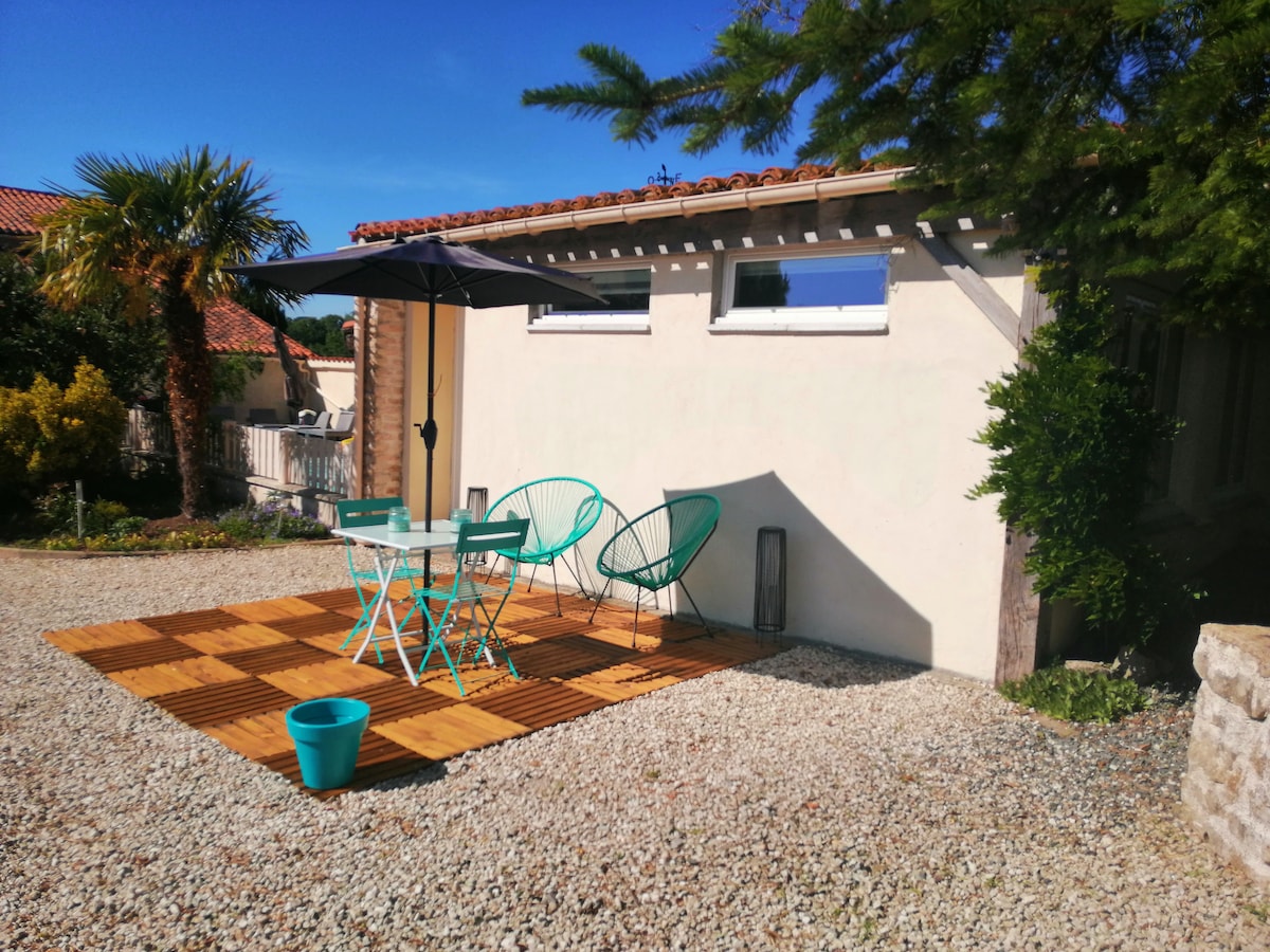 Bienvenue dans le sud Vendée. Studio indépendant attenant à notre maison de 40 m2 tout équipé pour 2 personnes.vous y serez au calme tout en étant à proximité de tous commerces. Emplacement idéal pour de nombreuses visites de notre région. Le studio dispose d'une chambre à l étage avec salle de bain,toilette.la pièce de vie au rez-de-chaussée avec kitchenette comporte un couchage supplémentaire avec un canapé lit
