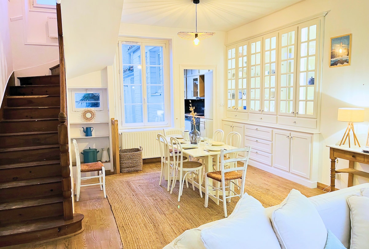 Maison 85m2 idéalement située dans rue calme. À Proximité : Port de pêche et restaurants, grande plage à 2min30 à pied. Centre ville avec son hall et marché couvert, Chenal â 80m, - Garage privé à 20m inclus - 1 pièce principale RDC, Wifi - 2 Chambres au 1/2 niveau avec lit double 160 - 1 SDB avec douche - Mezzanine avec canapé lit 120 - cours fermée - Loué sans draps ni serviette, possibilité location - Logement à rendre TRÈS propre. (Nettoyage non inclus, forfait ménage de 50€ possible)