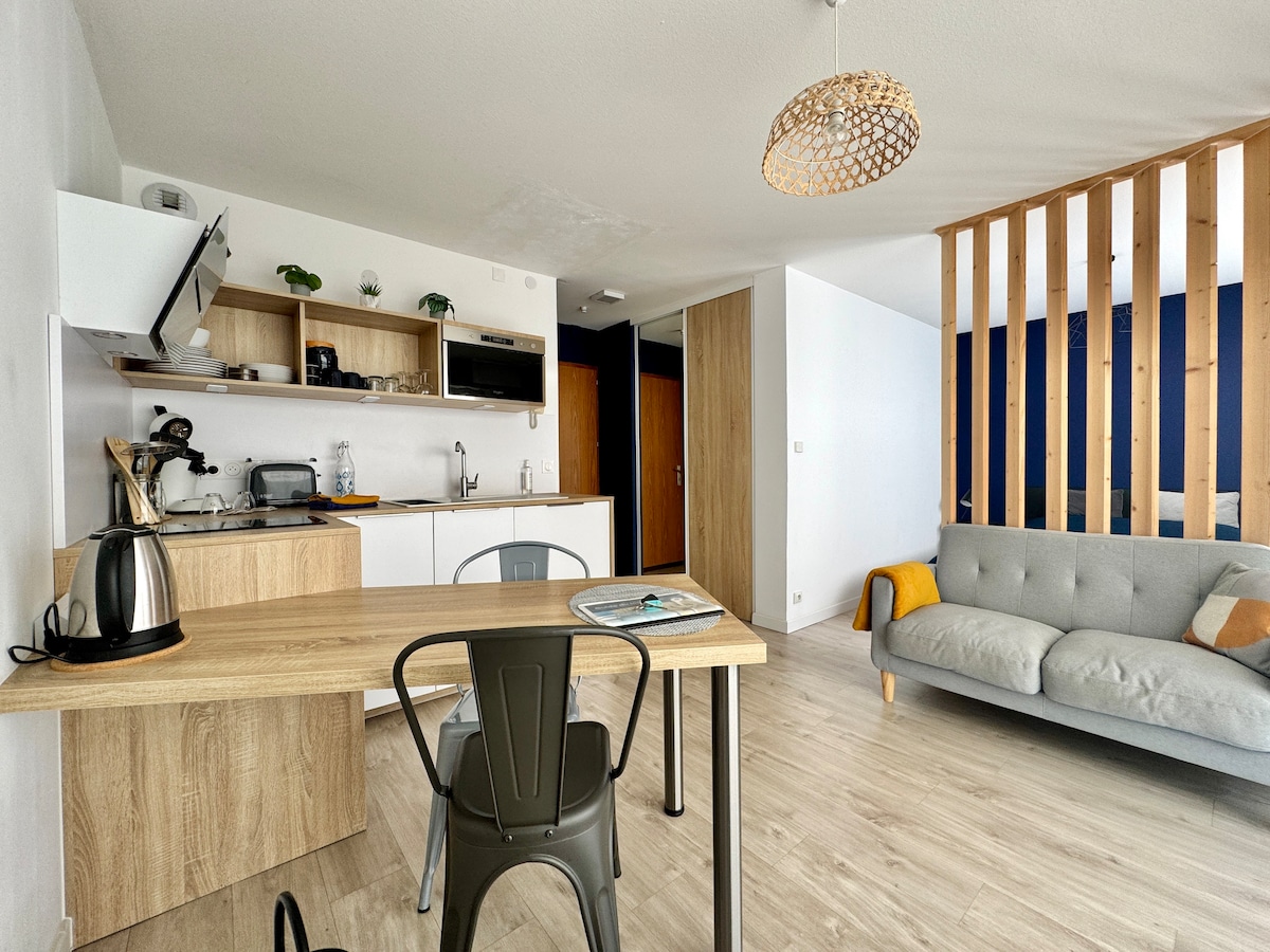 Au centre de tout ( centre ville, commerces, rues piétonnes, marché couvert, restaurants, sites touristiques, les ports, le chenal, et ... la grande plage des Sables d'olonne ), notre studio est coquet et super agencé avec canapé lit équipé d'une vraie literie confortable le matériel de plage est à votre disposition ainsi que 2 vélos On vous fournit le linge de toilette, draps, torchons, la wifi, premiers nécessaires de consommation Possibilité de facture avec TVA récupérable
