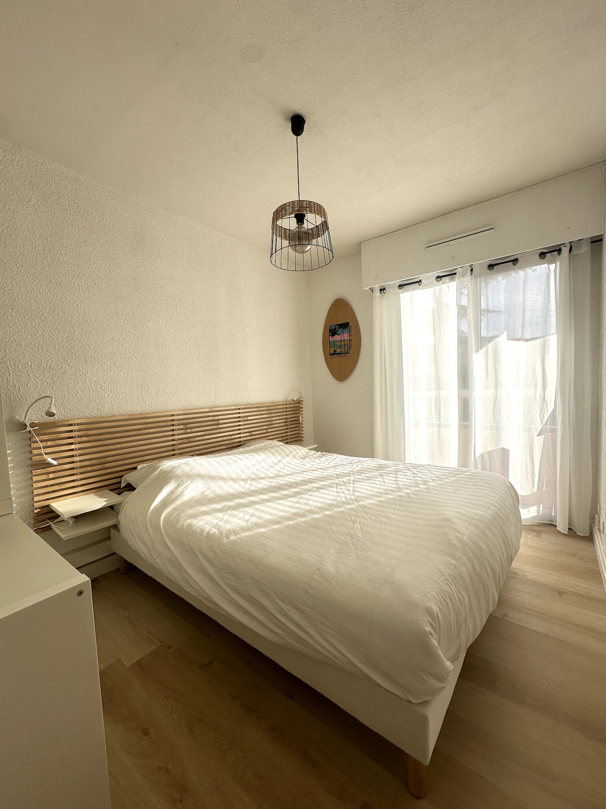 Cet appartement tout équipé de 64 m2 comprenant 2 chambres, est prêt à accueillir jusqu'à quatre personnes, dans un cadre chaleureux et confortable. Vous y trouverez tous les équipements nécessaires pour un séjour agréable, y compris des draps et serviettes de bain fournis. Profitez de la lumière naturelle qui inonde chaque pièce et de la brise marine rafraîchissante grâce à l'orientation traversante de l'appartement.