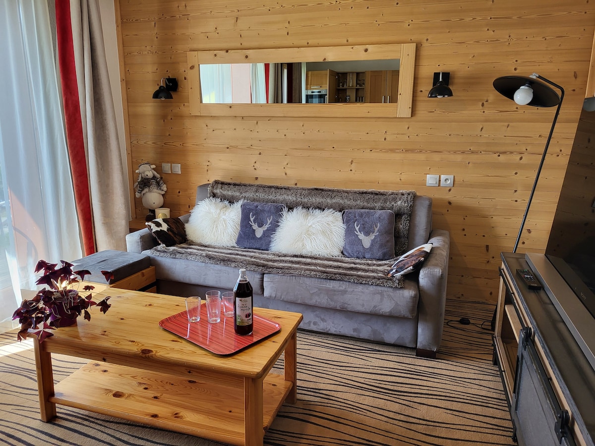 tudio cabin all comfort 4 people low station Les Saisies. Large living room renovated with kitchen, ceramic hob, sofa bed bultex, balcony facing south. 2 bunk beds in the entrance (new mattresses), a bathroom with bathtub. Beautiful view of the Beaufortain massif. Bed sheets and bath sheets provided. Come and enjoy a moment of calm and relaxation in nature! Access to various outdoor sports: mountain biking or VAE, hiking, trail, swimming pool, tree climbing...