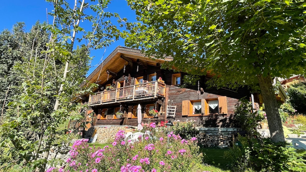 迷人的老式木石度假木屋,可欣赏勃朗峰的美景