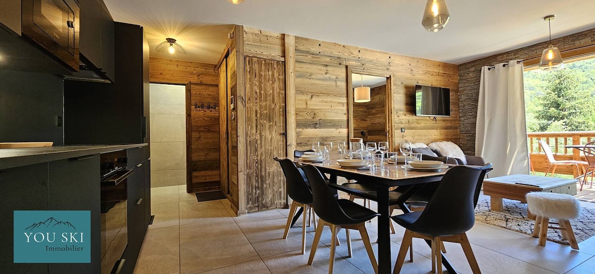 Appartement classé 5* luxe par logis de France Situé idéalement à 100 mètres des remontés mécaniques. Il comprend deux chambres confortables (dont une avec sa salle de bain et wc) mais également deux lits superposés dans le couloir et un canapé lit haut de gamme dans le salon) Très cocooning et très lumineux il est équipé de tous les accessoires pour agrémenter votre séjour. N’hésitez pas à me poser vos questions et à très bientôt.