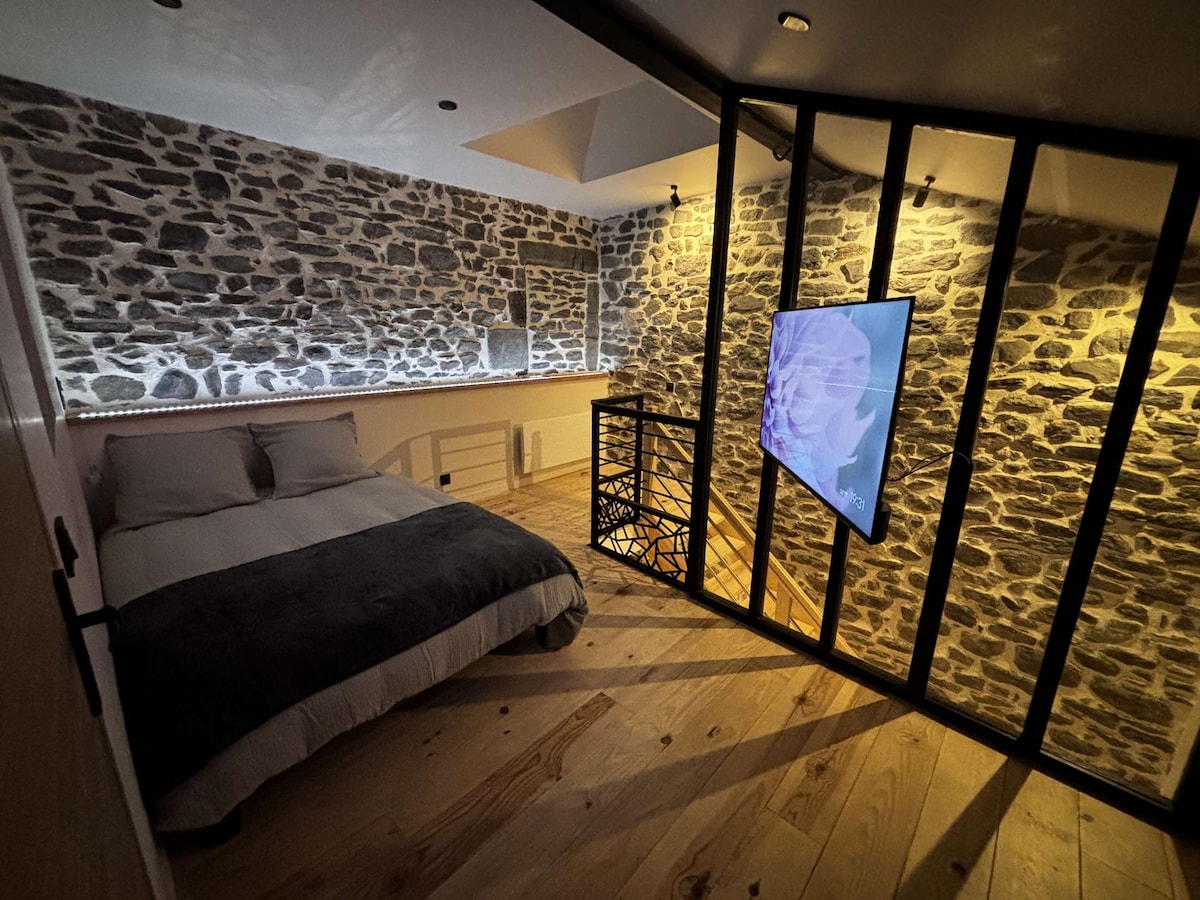 Simplifiez-vous la vie dans ce logement paisible et central. Dans un immeuble du 15 ème siècle dans le cœur historique de notre belle ville de saint flour face à la cathédrale. Vient d'être entièrement rénové avec goût et très confortable. Linge de lit en gaze de coton. Possibilité de lit bébé sur demande. Attention me préciser si même pour deux personnes vous souhaitez le lit du canapé WiFi 6 TV Local fermé pour stocker vos velo