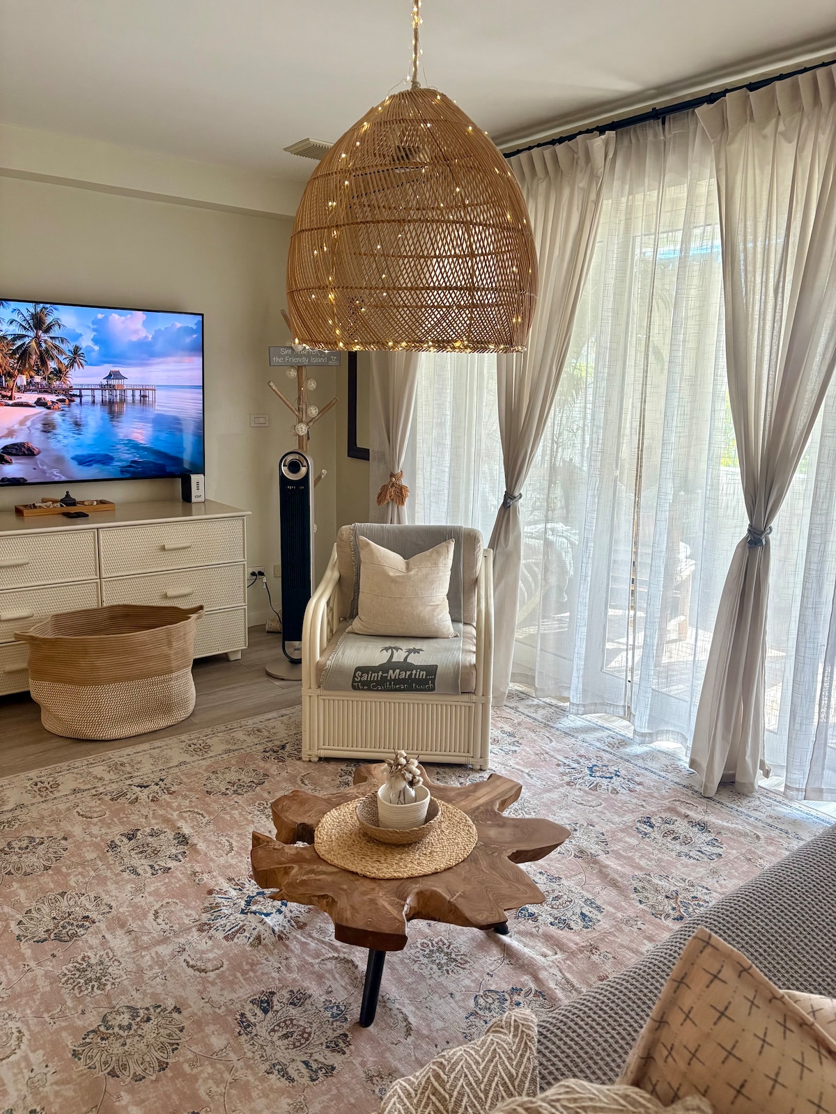 Delightful one bedroom appt. Fully furnished with mid century teak furniture. A spacious 70m2 space with large terrace in a mature tropical garden. A brand new fully equipped kitchen was added in October 2022. Located in trendy and safe Cupecoy. CJ1 is a quiet oasis to relax in the luxurious garden, or head for the the renowned beach of Mullet bay within a 3 minute walk. Supermarkets, gym yoga studio very close by. This is the place to be.