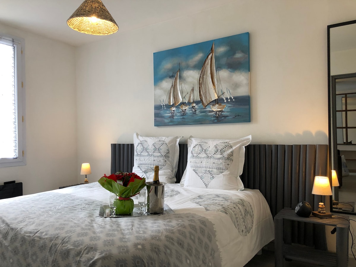 Profitez d'un séjour sympa dans ce charmant T2 de 55 m2 cosy, entièrement équipé et décoré avec soin. (derniers travaux d’agencement : janvier 2026) Proche des thermes, de la gare, du centre ville et du port de plaisance. Idéal pour un séjour, une cure, un stage ou un voyage d'affaires. Le logement est adapté pour 2 personnes (lit 140) avec literie de qualité. Possibilité pour 3 personnes (lit d'appoint) pour des courts séjours Stationnement gratuit.