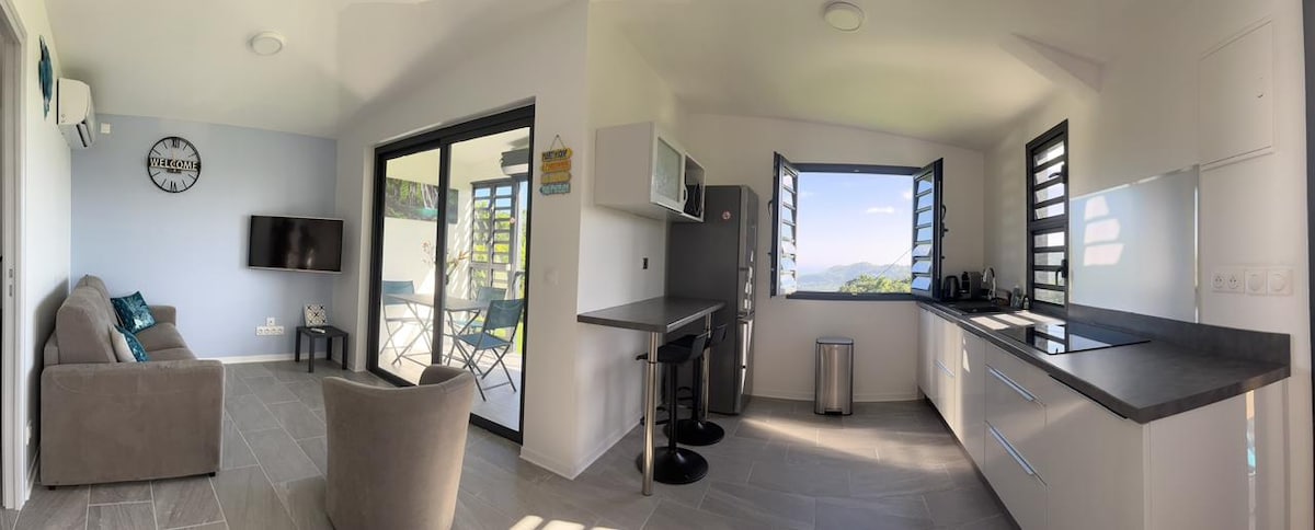 Appartement neuf, arboré avec vue sur mer et l’horizon. Cadre apaisant, relaxant sans vis à vis Wifi, chaines câblées et Netflix Vue sur mer et rocher du Diamant Un coucher de soleil imprenable et différent chaque jour Proche de la plage avec ses mini marché de fruits et légumes, snacks, crêperie et restaurants (5 mn à pieds), des commerces (8 min en voiture) Situé au sud de l'île, sur la route des plages, du Marin et de sa marina Parking et entrée privée Hôtes disponibles et accessibles