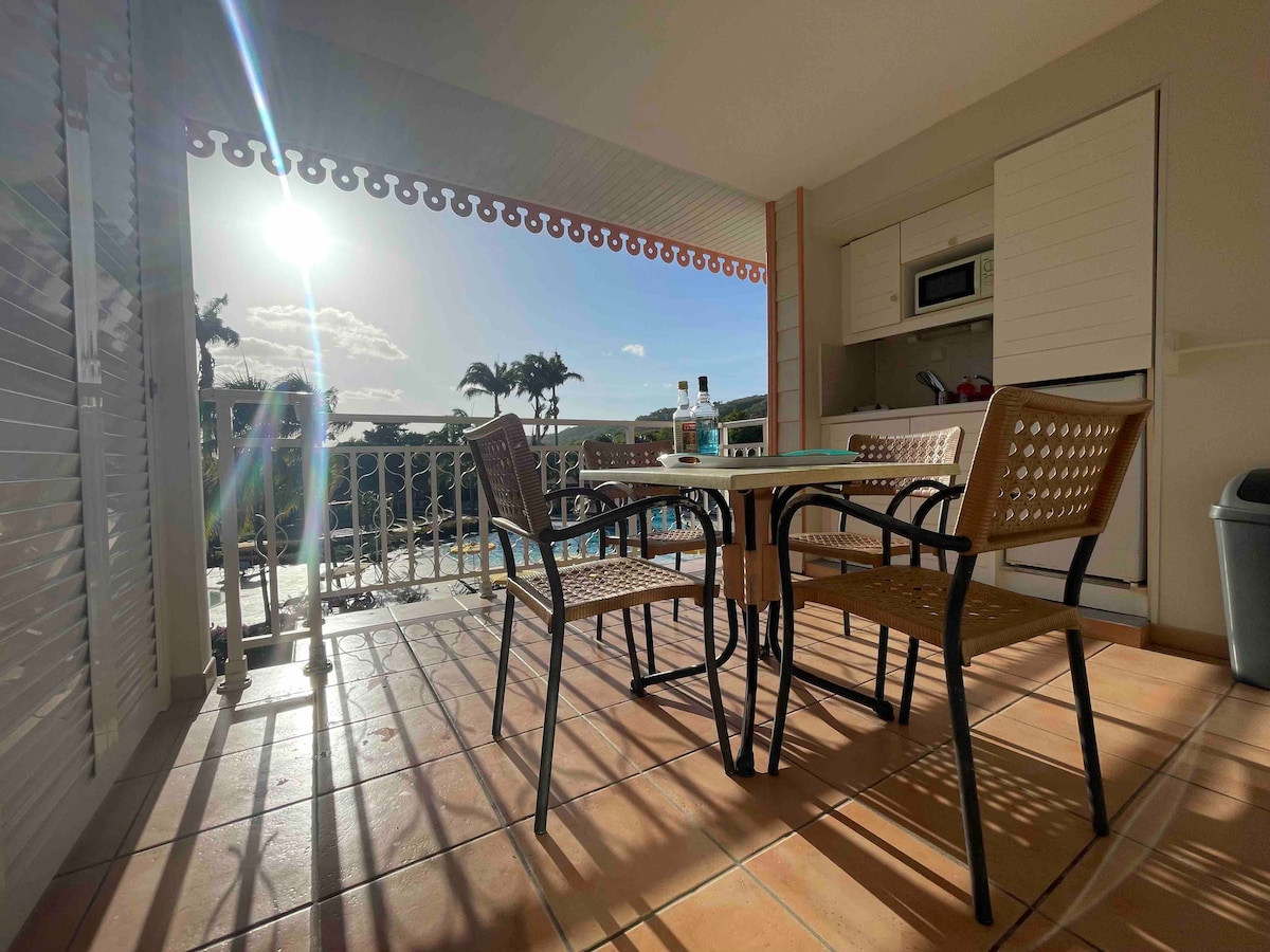 Offrez-vous un moment de rêve face à l’océan dans un complexe avec une incroyable piscine avec lagon, transats et palmiers 🏖️🌴☀️ Profitez d'un joli studio tout équipé pour vous reposer et admirer la vue époustouflante depuis le balcon. Climatisation, Wi-Fi, coin nuit confortable, cuisine extérieure avec vue… tout y est pour un séjour fabuleux ! Un cadre idyllique pour se détendre seul, en couple ou en famille. 💫 Prêt(e) à vous évader ? Réservez dès maintenant votre séjour au soleil !