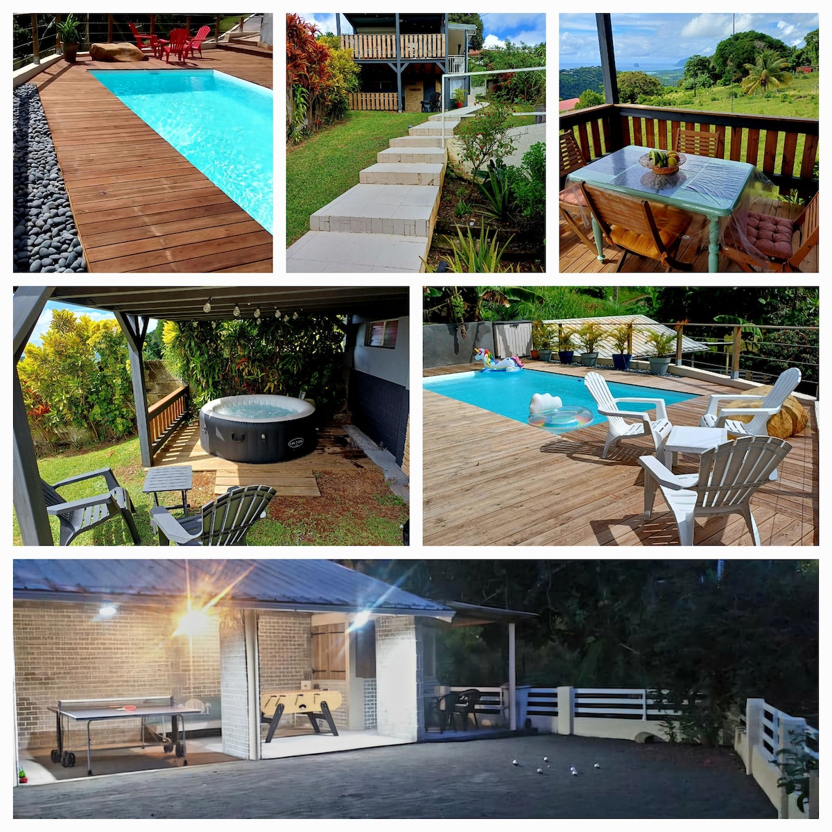 Our Ti surf Lodge is a bungalow for two people nestled in the heart of the tropical vegetation, in the municipality of Le Diamant. Entirely made of exotic wood, the lodge is relaxing and unique... With its private pool, you can rest and relax while enjoying the sunbathing. Covered outdoor kitchen, air-conditioned bedroom with TV and Italian bathroom. Separate toilets. Private entrance with secure parking space.