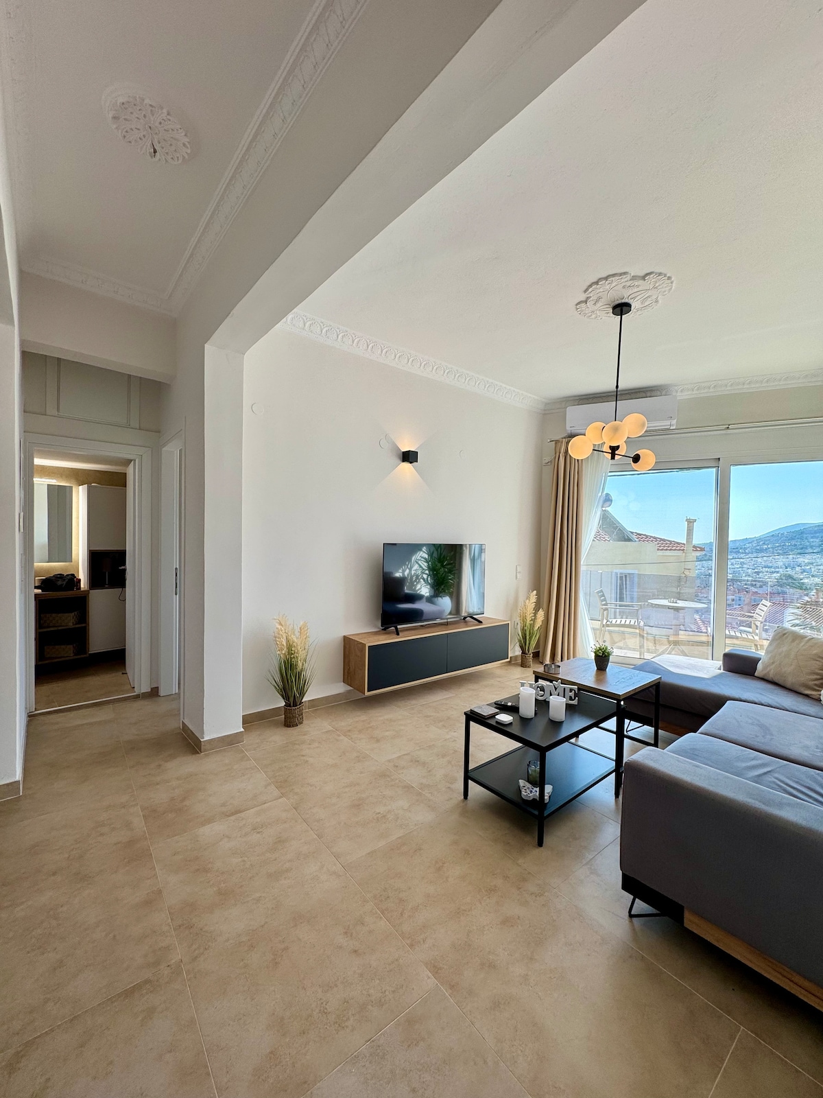 Το διαμέρισμα βρίσκεται στον Α όροφο ενός παραδοσιακού κτιρίου! Ανακαινισμένο το 2018 με φροντίδα και προσαρμοσμένο στις σύγχρονες ανάγκες. Είναι ένας μοντέρνος χώρος με κλιματισμο που το κανει καταλληλο για καθε εποχη! Διαθέτει 2 υπνοδωμάτια με διπλα κρεβατια, μεγάλο WC με ντουζιερα, κουζίνα πλήρως εξοπλισμένη που συνδέεται με άνετο καθιστικό! Το σπιτι βρισκεται στο κεντρο της πολης! Τριγυρω θα βρειτε εστιατορια,μπαρ, καταστηματα,μνημεια,συγκοινωνιες !Παντου θα πατε σε 5λεπτα με τα ποδια!