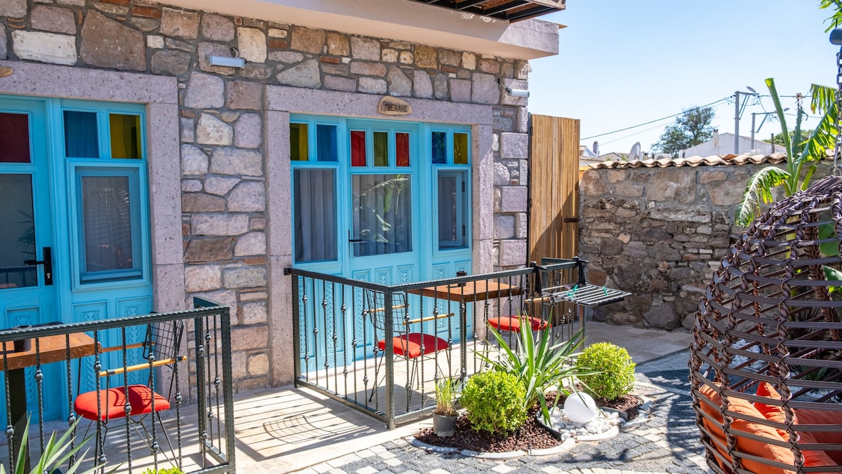 Şeytanın Kahvesi'ne 50 metre, Ayvalık'ın şehir merkezine ise yürüyerek sadece 4 dakika uzaklıktadır. Oda giriş katta yer almaktadır. Tarihi Rum evinin taş odasıdır. Odada minibar ve kettle seti de bulunmaktadır. Fiyatlarımıza kahvaltı dahildir. *Görsellerdeki balkon oda dışında olup ortak kullanımlıdır.