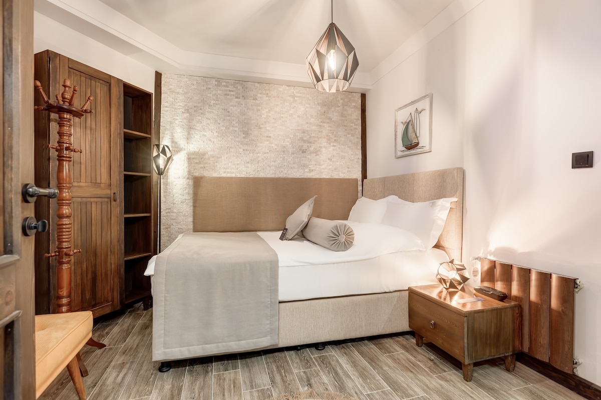 Enjoy your luxurious stay in our 1-bedroom apartment located in a central 24unit residence in Cunda, featuring a large shared pool and daily breakfast. Each apt comes with either a private balcony or garden terrace. It includes a double bed in the bedroom & a single sofa in the living room suitable for an additional guest. If you're traveling with a child, please inform us in advance. Just a short walk from Cunda's attractions, our place offers both comfort & convenience for up to 3 guests.