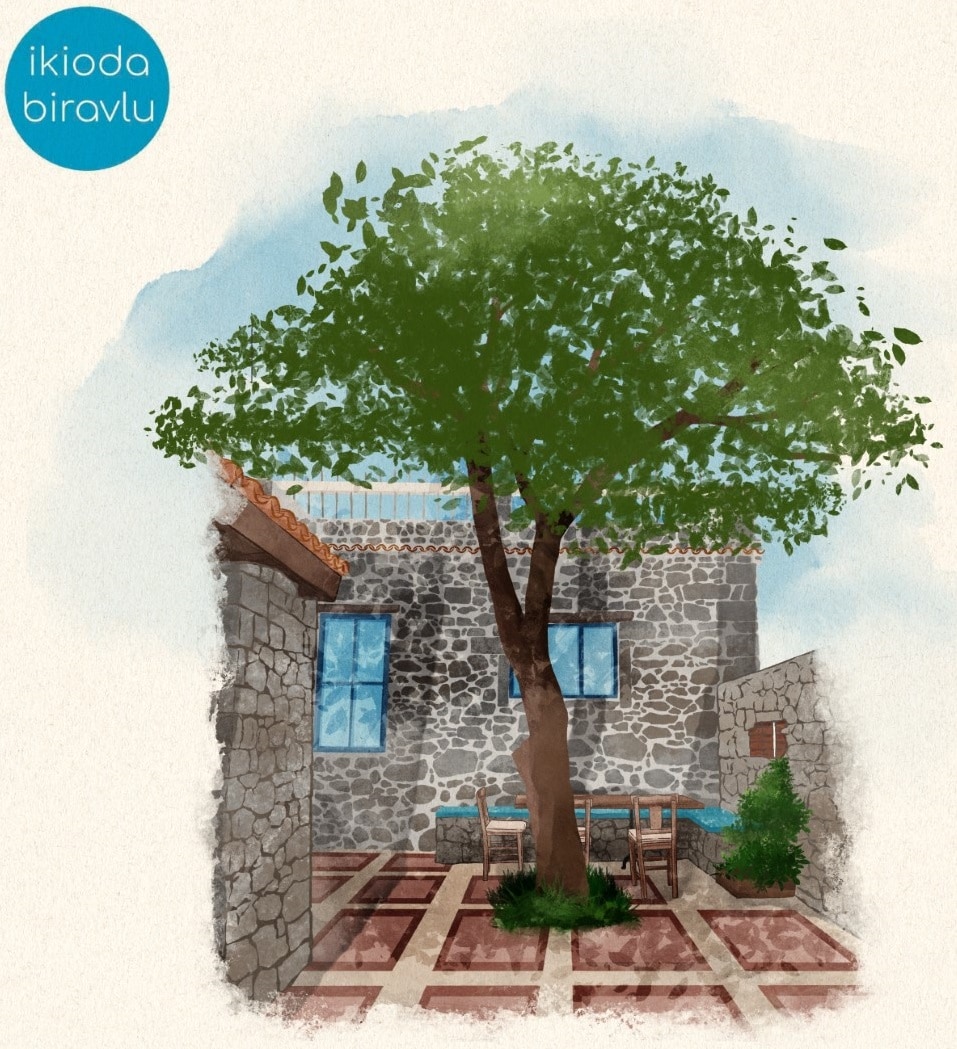 「İkiodabiravlu」整栋石屋,可欣赏海景