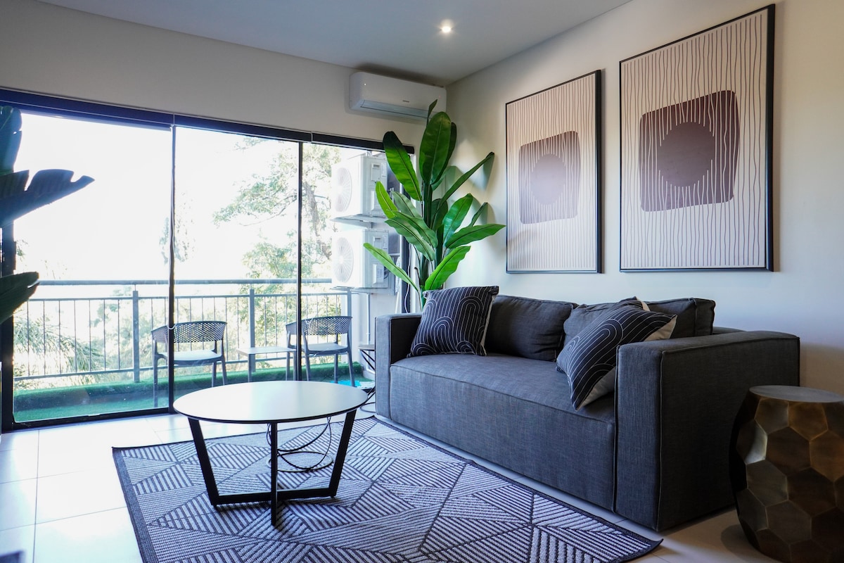 Stylish & comfortable self-catering apartments offer a home away from home in a leafy suburb in Johannesburg. Fully furnished 71 m² two-bedroom units feature a main bedroom with queen-size bed & en-suite bathroom including shower & bathtub. Second bedroom has a double bed & second bathroom has a bathtub. Fully equipped kitchen with modern appliances, a lounge, dining area & large balcony. Smart TV, with Netflix, DSTV, Showmax & Amazon Prime Video ready (Own Login), dedicated workspace.
