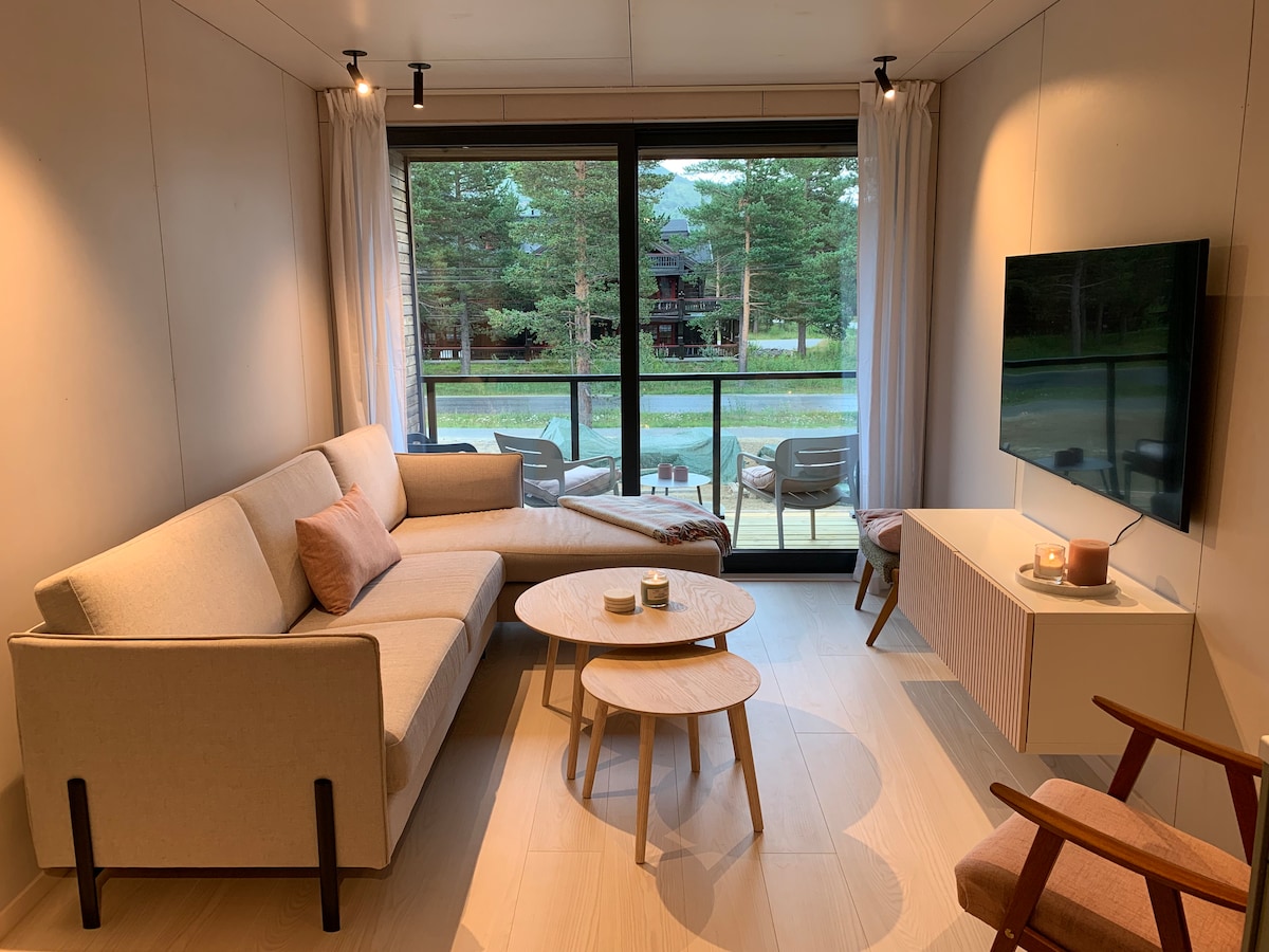 位于Bjorli市中心的新公寓。六个睡觉的地方。