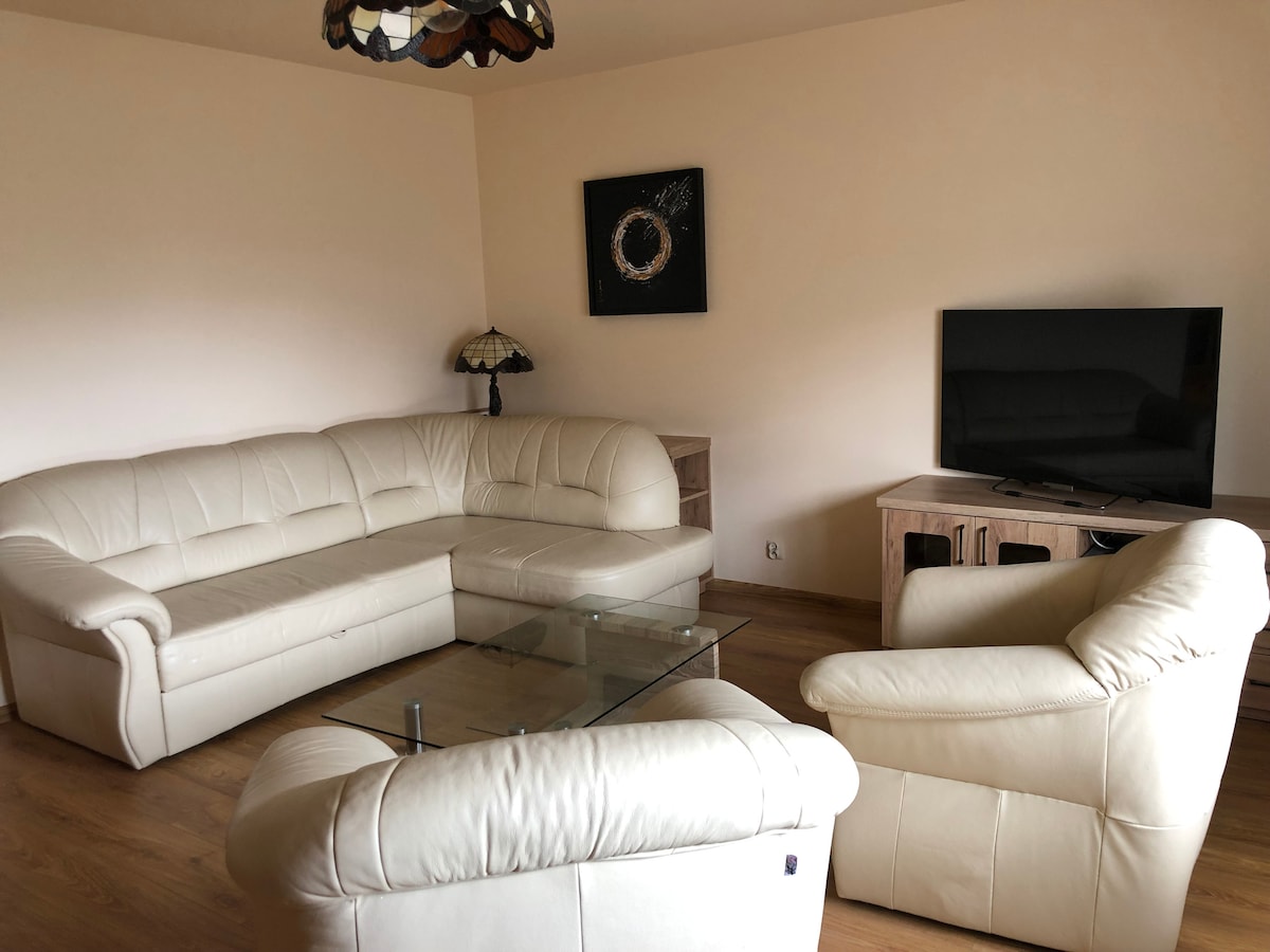 Beautifully decorated 1 bedroom apartment with a spacious living room with kitchen annex and a large bathroom. Close to train station (only 7 mins ride to city center), Balice airport (10 mins by direct train) and multiple transportation. Air-conditioning. Free underground parking, elevator in the building. The apartment is located in a very well-maintained neighborhood. Several local shops and restaurants nearby. Tennis courts in the area. Ideal for weekend gateway as well as for longer stay.