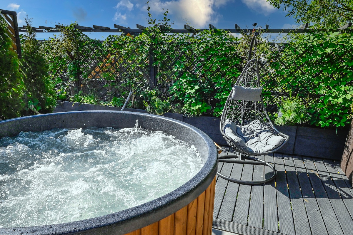 Find peace at "Closer to Heaven" a luxury retreat on Koskowa Mountain, 820m above sea level. Enjoy panoramic views of the Beskid Wyspowy and Tatra Mountains from a spacious terrace. This 88 sqm eco-friendly home is surrounded by 2,300 sqm of private land. Unwind in the year-round 5-person chlorine-free outdoor spa with 2 reclining massage seats. Pure spring tap water, an ice-maker fridge, and fast Wi-Fi add comfort. Trails, forests, and nature await – closer to heaven, closer to you.