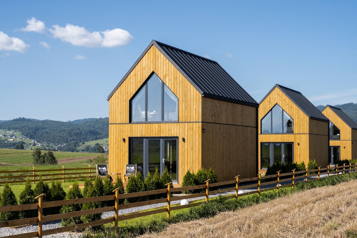 Polne Chaty are unique and charming ecological houses in the bosom of nature. You will experience peace and quiet here, as well as space to spend quality time with yourself, as a couple or with your loved ones. Here you will find a view of the meadows and the majestic Spisz hills, and a few steps from us you will admire the beautiful panorama of the Tatra Mountains. We built the houses for ourselves and we live in one of them, so we will be happy to host you here.