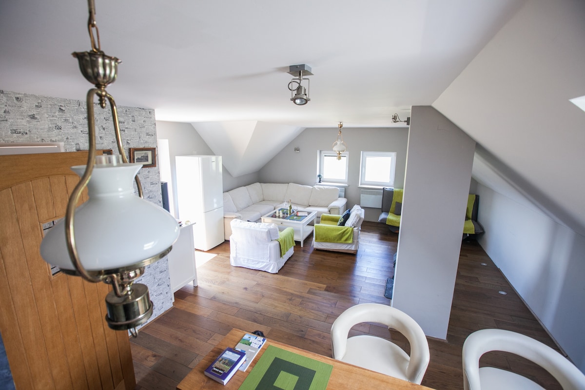 3 bedroom Loft located on 3rd floor - 3 separate bedrooms - huge living room with comfy sofa - equipped kitchen with dining table - bathroom with shower+ toilet - air-conditioning in the living room - Smart TV (international Channels and internet connection, so you can use YouTube, Netflix etc) - no limit wi- fi - peaceful location in the City Center - Loft Atmosphere ;) - option for breakfast in the City or home delivery