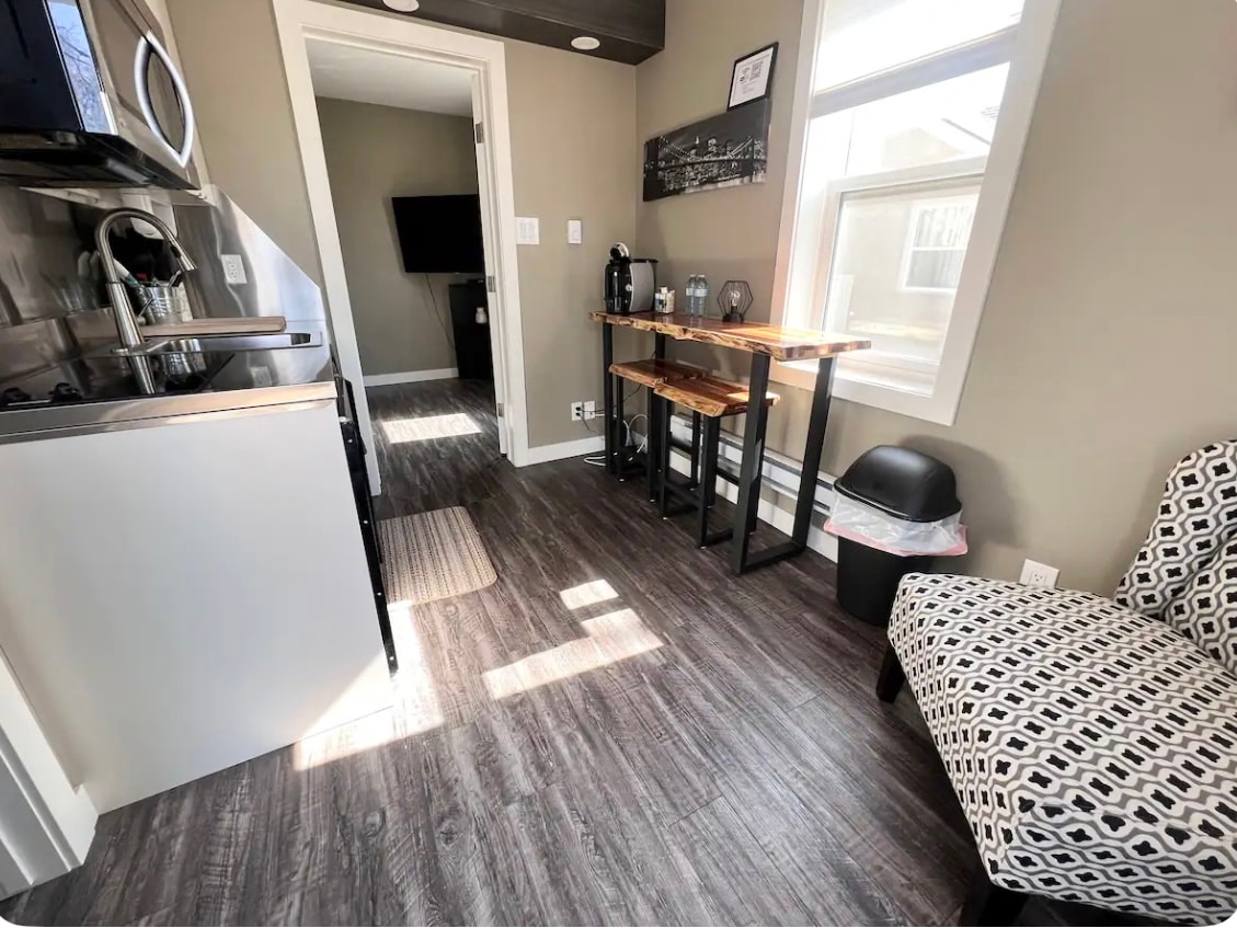 This studio suite has everything you need to live comfortably. This suite is best described as a micro apartment suite, it’s a cute, cozy space. Keep it simple at this peaceful and centrally located place. Perfect for either a getaway or work! Fast (non-shared) WIFI.
