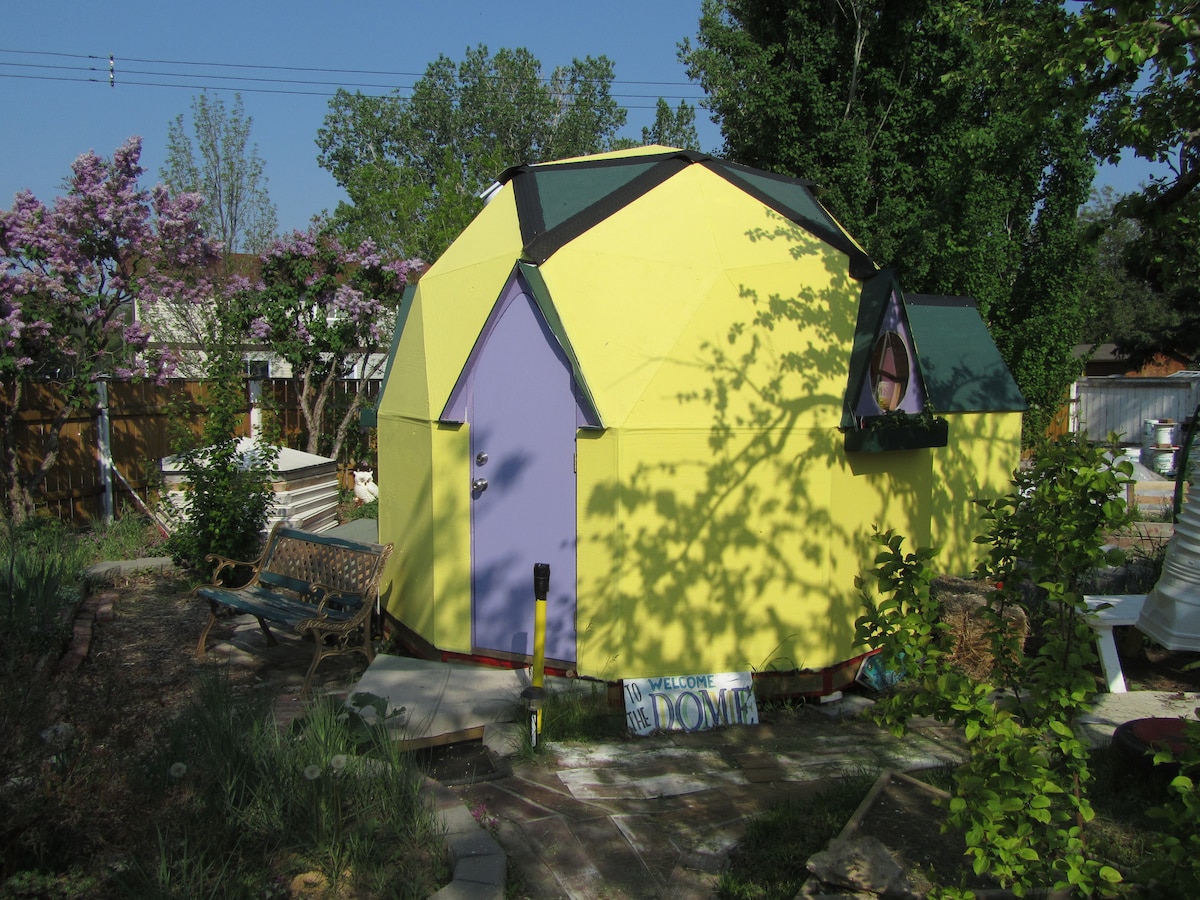 For the ultimate in privacy and freedom this dome in an urban backyard has no equal. The Gnome Dome has (almost) all the features of a hotel room with none of the noise. The bed is suitable for one person only (1 meter wide) The backyard is an oasis where you can enjoy a morning coffee or a quiet evening drink. While there is no shower your sanitation needs are met simply (not unlike a body wash). For a complete view of the Gnome Dome go to youtube and enter "Airbnb TinyDomeHome #1"