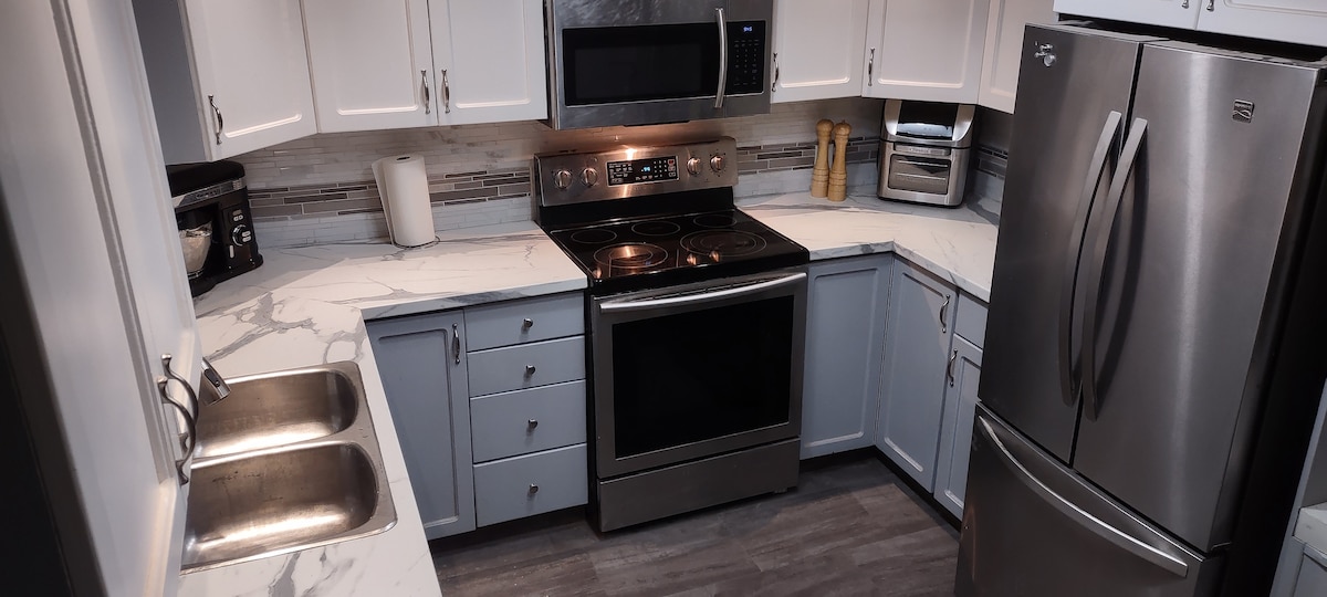 A renovated, bright 2 bedroom suite on the lower level of a split level home. Conveniently located 3 minutes from the University (U of L), minutes from shopping, restaurants and golf courses, in a quiet west side neighbourhood. The new kitchen is fully equipped with all the amenities of home that you might need for a comfortable stay. The kitchen has all the dishes, utensils, pots, pans, coffee, condiments etc. that you would expect. If anything is missing I am happy to try and supply!