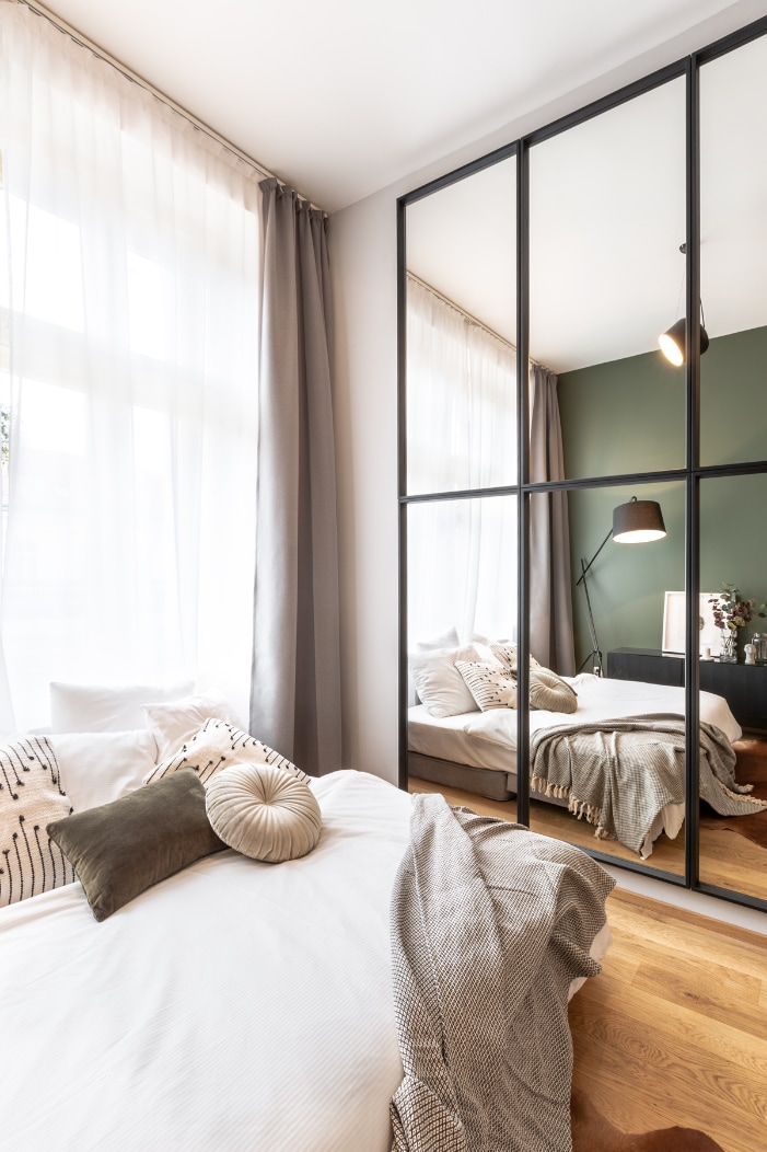 Unique apartment in the Old Town of Prague in the style of Antique. The original elements such as decorative moldings in combination with modern materials such as marble, glass, wood have been preserved. We love the rare black oak on the floor and the brass trim around the windows and the entrance. The Antique style is complemented by a statue of an ancient god and a painting with small antique heads. PLEASE TAKE A LOOK AT MY PROFILE NOT TO MISS OUR OTHER EXCEPTIONAL ACCOMMODATIONS.
